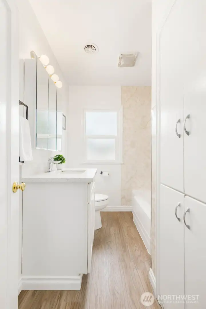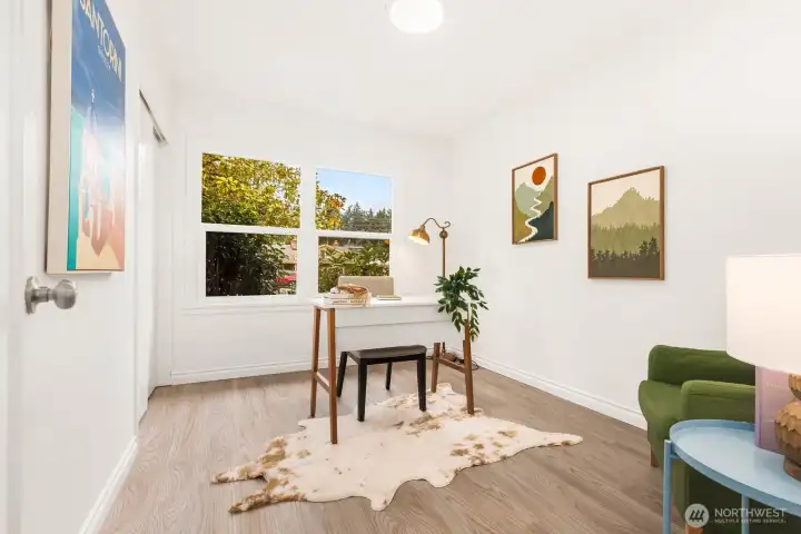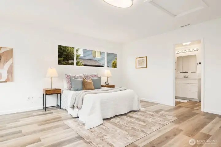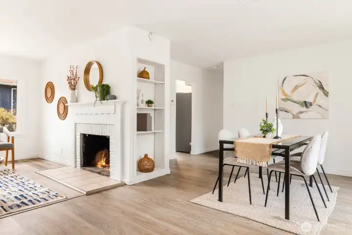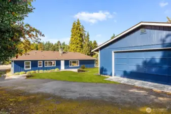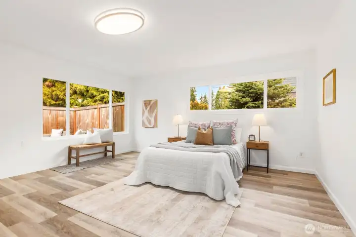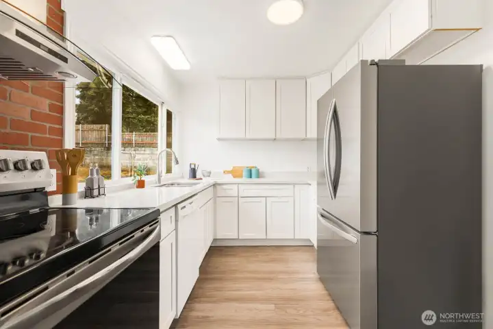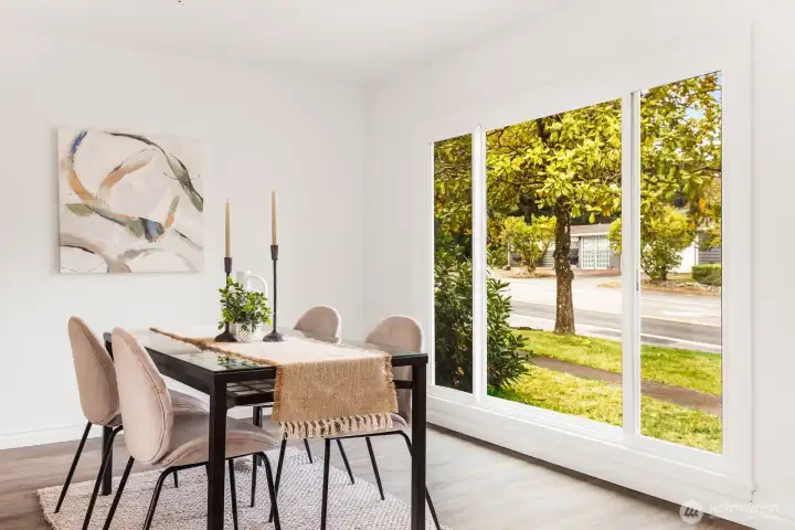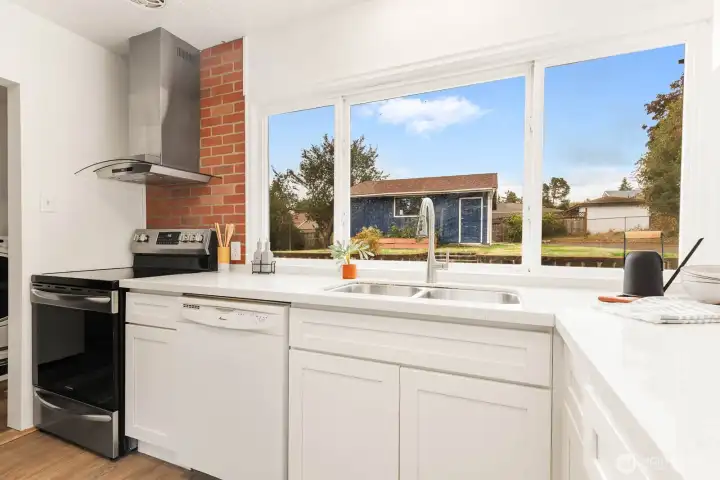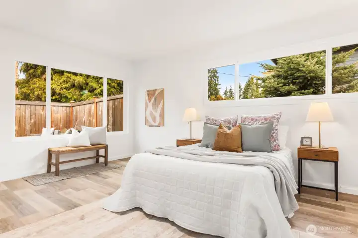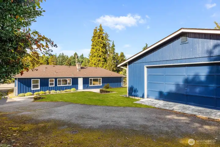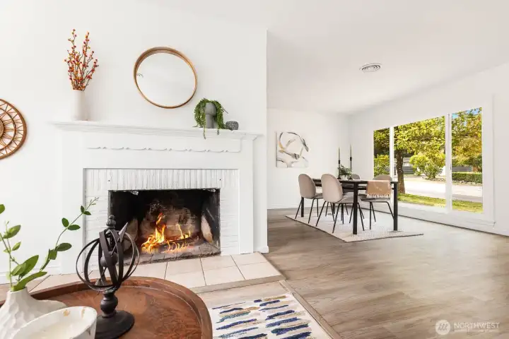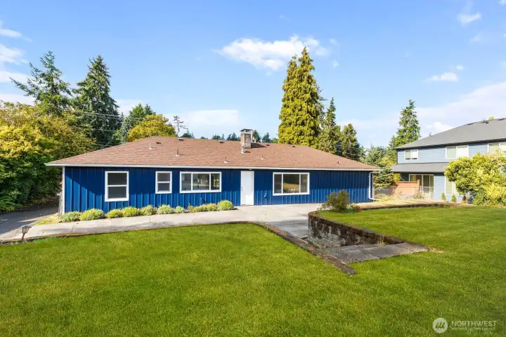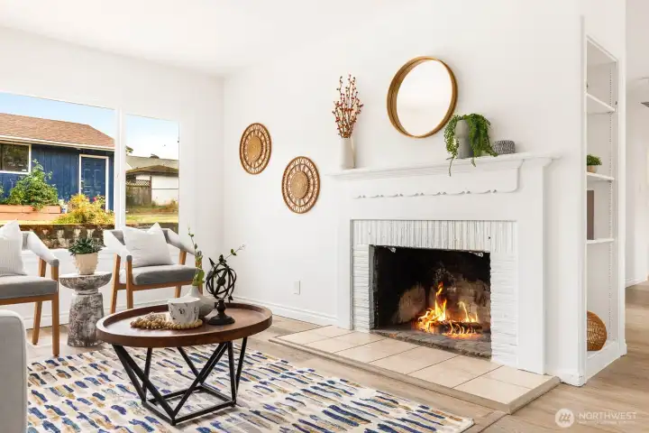 Discover the epitome of mid-century charm in this meticulously updated, move-in ready University Place rambler, perched on a sprawling 12,000 sf lot. Freshly painted inside and out, step inside to a sun-drenched living room with new windows anchored by a cozy wood-burning fireplace. Retreat to the primary suite boasting a walk-in closet, a spa-like 3/4 bath, and a private fenced patio. Just down the hall, three spacious bedrooms and a full bath. The kitchen shines equipped with sleek new appliances and quartz counters, plus A/C! HVAC installed 2023. The crown jewel: a massive detached garage/shop ideal for hobbyists, mechanics, or extra storage. Enjoy nearby Sunnyside Beach Park with waterfront access, shopping, and top-rated schools.