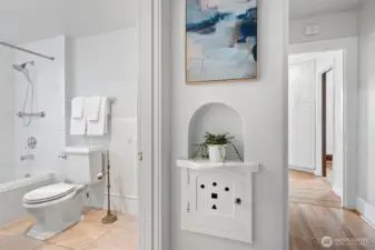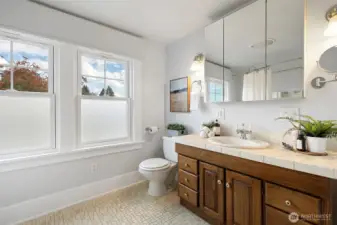 Charming 1927 English Tudor Revival adjacent to UPS, timeless character meets modern comfort. The home showcases hardwood floors, graceful coved ceilings, and a striking Batchelder tile gas fireplace. The inviting “gather here” kitchen blends vintage charm with thoughtful updates. "Peace of mind" system upgrades including furnace, sewer line, plumbing, and electrical. Generous main living areas and a versatile floor plan provide flexibility with a main-level bedroom and full bath, an upstairs primary suite, and a lower level with bonus space, bedroom, bath, and storage. Outdoor living is equally delightful with a covered back patio. A rare opportunity to own a home of enduring character in a prime location.