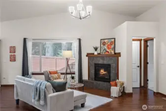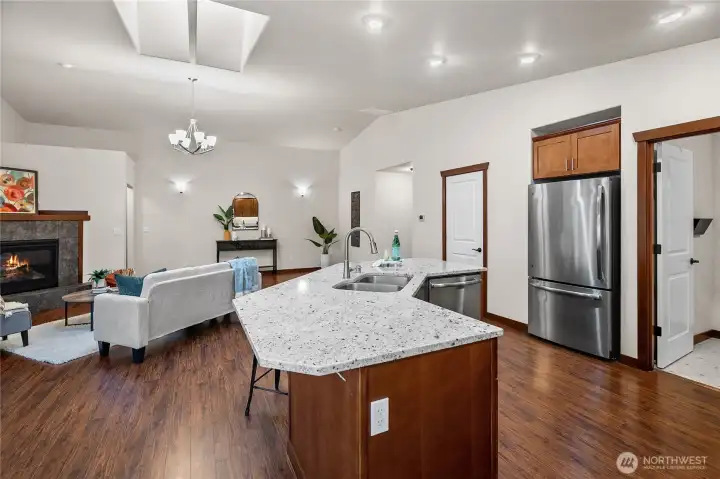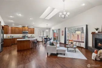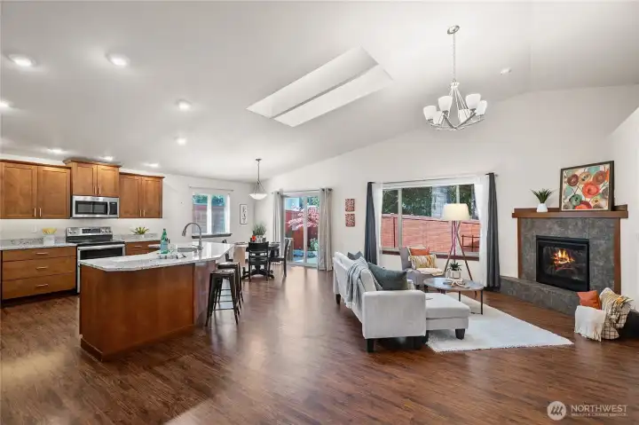 Discover the ease of single-level living in this beautifully maintained one-story Poulsbo home with a spacious open floor plan designed for comfort and convenience You will love the large kitchen, abundance of natural light, gas fireplace and a seamless flow that’s perfect for relaxed living and effortless entertaining. Whether you're hosting guests or enjoying a quiet evening at home, this layout offers the perfect balance of space and simplicity. The back yard has been nicely landscaped, feels private and hosts a nice patio for seating.