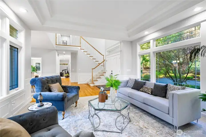 Discover the perfect blend of privacy, elegance & style at this gated and fully fenced custom-designed masterpiece by S. Smith, nestled in the prestigious Lakemont on a serene 0.8-acre lot. Surrounded by nature, soaring Double tray ceiling and expansive windows flood the space with natural light and 360-degree scenery. Newly upgraded in 2024, this home boasts 5 bedrooms and 3.5 baths, hardwood floors, a gourmet kitchen, fresh paint inside and out, new appliances and carpeting throughout. The luxurious primary suite and three bedrooms are upstairs, while the lower level boasts a rec room, movie theater, and guest suite. Meticulously landscaped grounds provide year-round beauty—all just minutes from urban conveniences.