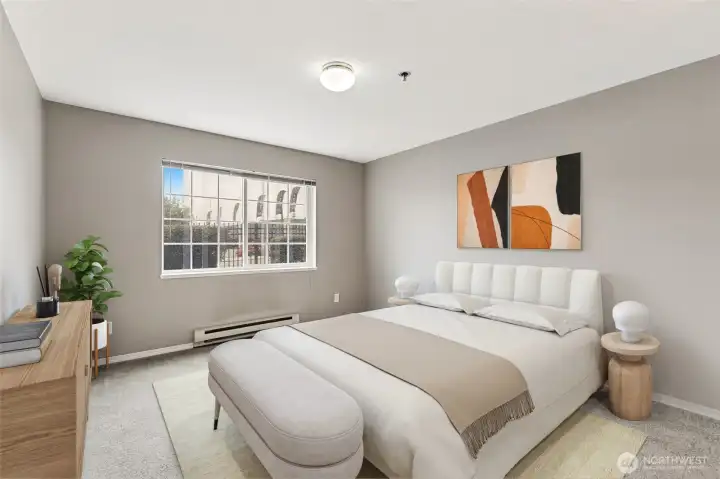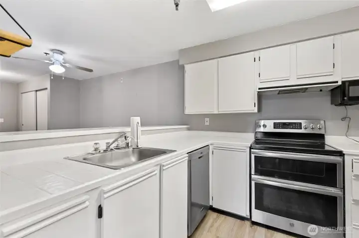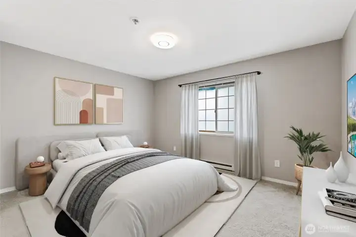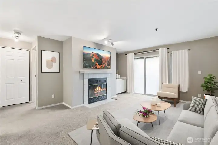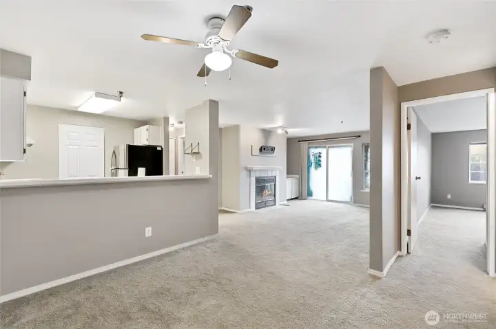 Welcome to this beautifully designed home filled with an abundance of natural light and charm! The open floor plan seamlessly connects the living, dining, and kitchen areas, making it perfect for both everyday living and entertaining. A cozy fireplace serves as the focal point of the spacious living room, creating a warm and inviting atmosphere. The modern kitchen features sleek stainless steel appliances and ample counter space for all your culinary needs. Each of the two generously sized bedrooms includes its own en-suite bathroom, offering comfort and privacy for all. Whether you're relaxing by the fire or hosting friends in the bright, airy living space, this home is a perfect blend of style and functionality. Don't miss it!