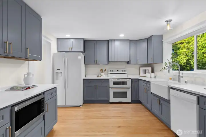 MICROSOFT - REDMOND - MARYMOORE PARK - LAKE WASHINGTON SCHOOL DISTRICT ... just to name a few! Step inside and enjoy the different spaces this home has to offer. Spacious new kitchen with park like views to an outside vibe every host would like to have. In from the back yard, cozy up in front of the fireplace with a good book or head straight into the sun lit family room for movies or game night. Formal dining for all to enjoy just off the kitchen. Large additional play/game room (convert to add. primary). Upstairs; large primary w/ new en-suite, 3 additional bedrooms of fantastic size. New full bath with attention to designer detail. This lot has plenty of mature landscaping, green grass to still enjoy this fall and loads of sunshine!