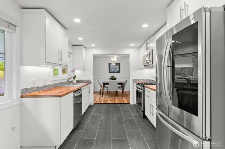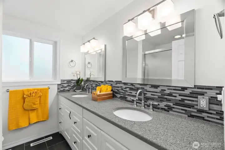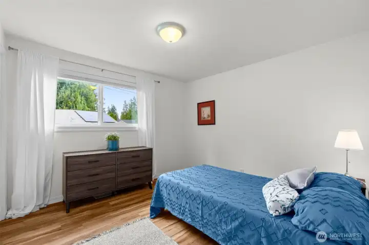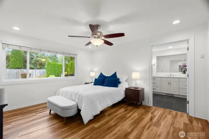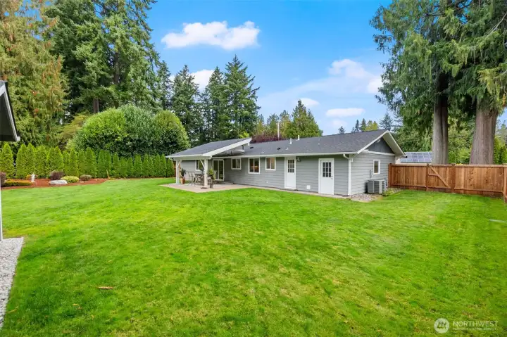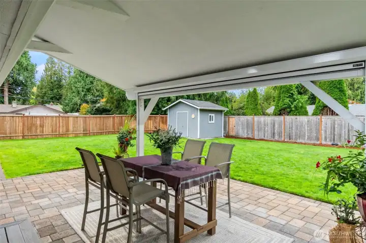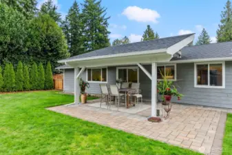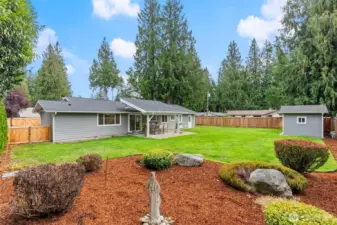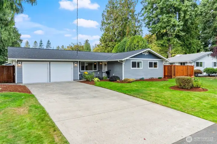 This beautifully updated, one-level home on a 1/3 acre lot in the quiet Brentwood neighborhood just may be the nicest one in the neighborhood! Truly turn key, with many updates including fresh paint, wainscoting, newer cabinets, wood kitchen counters, upgraded appliances, and laminate hardwood flooring throughout. Functional floor plan with private primary suite with lux bath-tile floors and granite counter, plus a 2nd bath with quartz and double sinks. Outdoor living shines with a custom entry, paver patio, covered back patio with remote sunshade, and side yard with double gate, perfect for RV parking! Fully fenced, sprinkled and large outdoor storage shed. Moments to parks, schools, shopping, JBLM and freeway. This one is special!