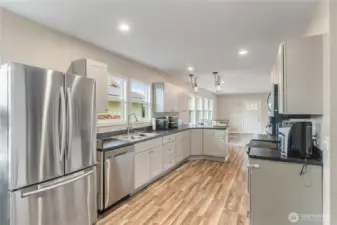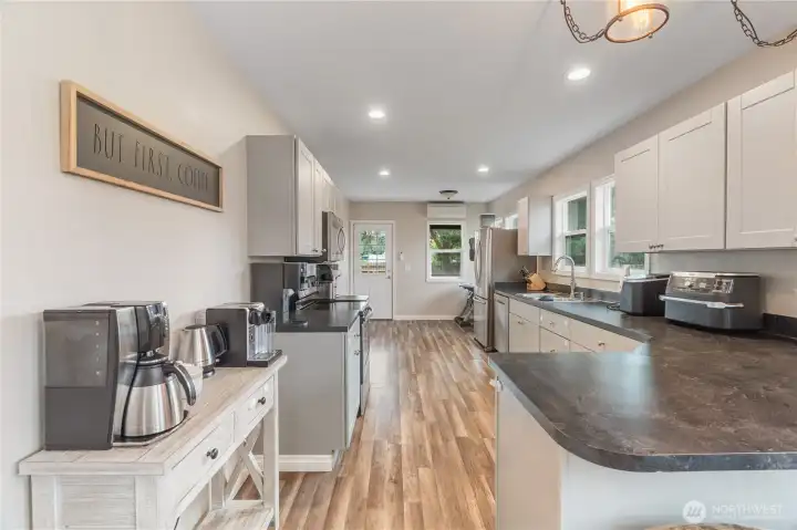 Move in ready in the heart of Hoquiam, this beautiful home was totally updated in 2018 and is full of charm and function. Step inside the living room that opens to the modern kitchen, complete with stainless steel appliances, and peninsula seating. The main floor features a primary suite with a ¾ bath, a second bedroom, and a full guest bath. At the back of the home, you’ll find a huge family room with vaulted ceilings, abundant natural light, a wet bar, dining area, and sliding doors that lead out to the back deck. Upstairs, a third bedroom with a landing offers versatile space. Outside you will find privacy behind the wooden fenced yard a carport and ample parking!