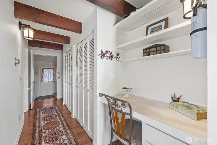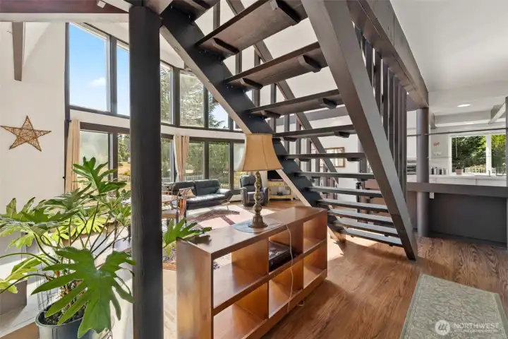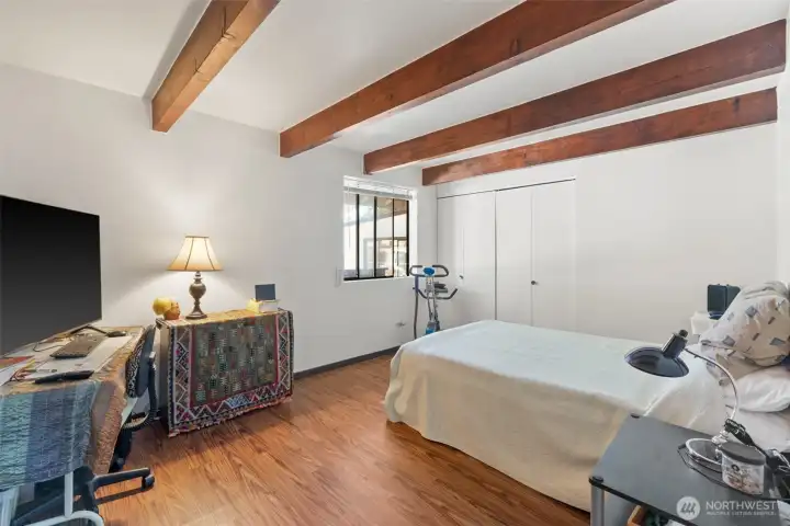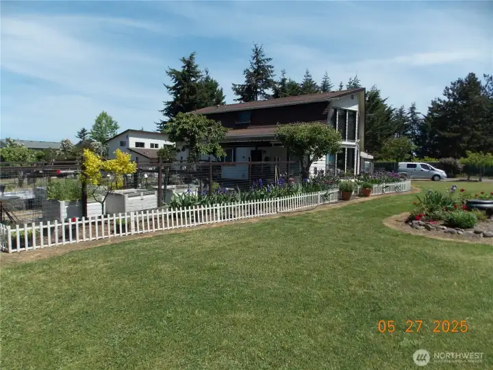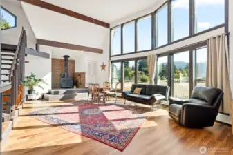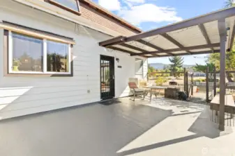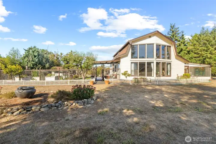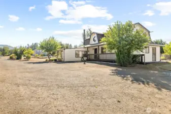 A rare blend of opportunity and lifestyle awaits at this Sequim property. Set on 1.26 acres with mountain views, the 2-bed, 1.75-bath main home is complemented by a private 1-bed, 0.75-bath ADU that provides solid rental income, flexible guest space, or WFH area. The cozy main residence features passive solar design for energy efficiency, light-filled interiors with 18' floor-to-ceiling windows, thick hardwood floors, exposed timber beams, attached sunroom, and a covered porch—all tucked at the end of a quiet lane. The generous lot offers ample space for homesteading or potential development (buyer to verify with county). Less than 2 miles from downtown, this property delivers privacy, convenience, and long-term value. No HOA.