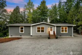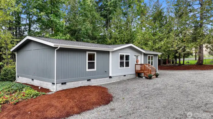 Welcome to your private retreat on 5 acres in Blaine! This 2024 built 3-bedroom, 2-bath home showcases vaulted ceilings, open concept living & a spacious kitchen island. The primary suite offers a dual-sink bath & walk-in closet. Gated entry provides privacy & security, with the property fully fenced & cross-fenced for animals. A critter building for goats, chickens, cows or more plus a pond, garden area & pump house shed/workspace complete the setting. Ample space for RV parking, future shop or ADU. Enjoy country living just minutes from the border & a short drive to Bellingham.