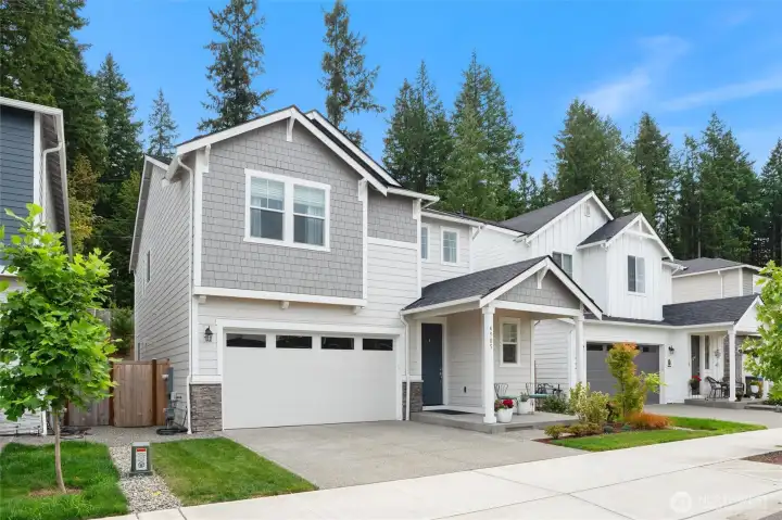 Completed in 2024, this thoughtfully designed 2-story home blends comfort, function, and modern style. The open-concept kitchen is equipped with a large island, pantry, and extensive storage, seamlessly connecting to the dining area and covered patio—ideal for indoor-outdoor living. The main level includes a bright living room with a cozy fireplace and a convenient half bath. Upstairs, enjoy a versatile bonus room, full laundry, and dual-sink vanities in both the main bath and the private primary ensuite. A fully fenced backyard offers space for play, pets, or entertaining. Located minutes from parks, shopping, Hwy 16, and the Southworth Ferry for an easy Seattle commute.