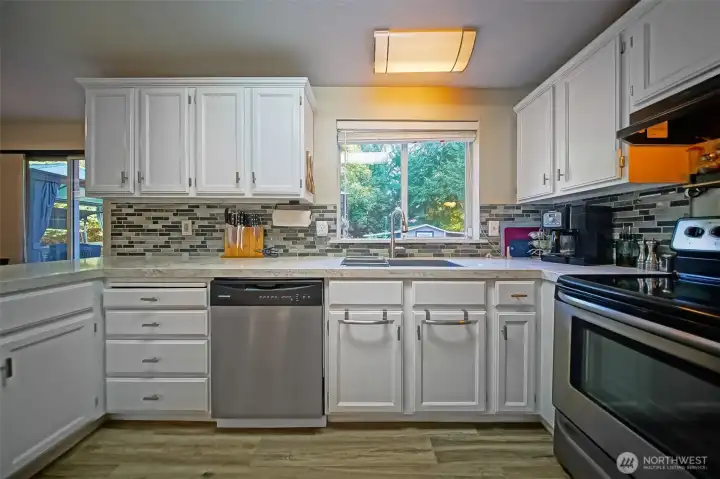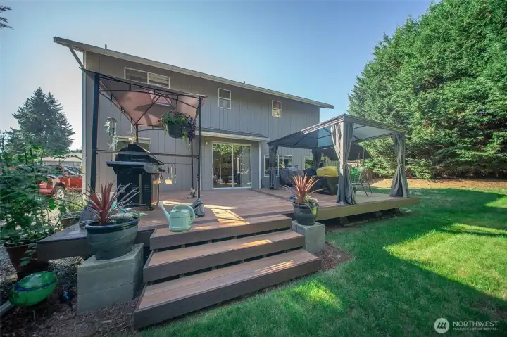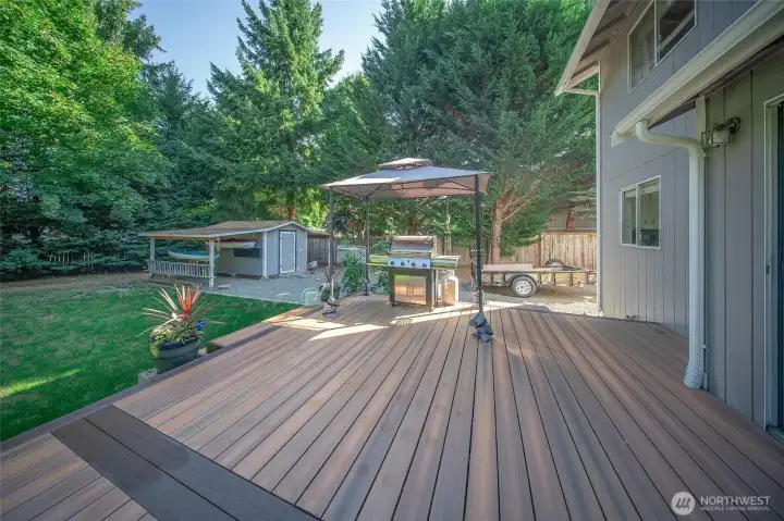Lovely 3 bed, 2.5 bath home w/ 1,700+ sq ft on a quiet street in a well-kept neighborhood. Sitting on a 1/3+ acre lot, the fully fenced yard w/ a large gate, perfect for a boat, RV, or extra vehicles. 3-car garage w/ a versatile 3rd bay. Vaulted entry opens to a step-down living rm w/ newer hardwood flrs throughout. The updated kitchen boasts granite counters, stylish backsplash, & stainless appliances, flowing into an eating area w/ backyard access & a cozy family rm. Upstairs, find a master suite w/ full bath & walk-in closet, plus 2 spacious beds sharing a full bath. Outside, a large Timber Tech deck offers space for BBQs & furniture, w/sunny lawn, walk-in shed w/ covered storage, & a small mower shed. Perfect for privacy & entertaining!