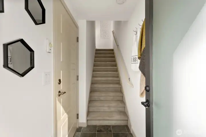 Live just blocks from some of Ballard's most beloved spots in this darling standalone townhome! A fenced front terrace & recently painted exterior lead you into a functional layout that lives larger than its sqft. Take in views of Mt Rainier, downtown & fall color thru large picture windows that let in great year-round light. Pick up takeout from Un Bien just up the street or whip up culinary delights in the kitchen, equipped w/gas range, SS appliances & ample storage space. Both beds upstairs boast vaulted ceilings & share a full bath + convenient upper level laundry. Attached 1-car garage + RARE exterior storage space that doubles as a playhouse. No HOA! Fantastic location close to all your fave spots + an easy commute in any direction.