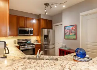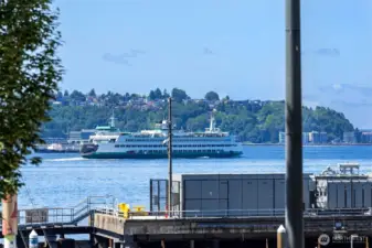 Live in the heart of Seattle's revitalized waterfront with views of Elliott Bay and glowing sunsets right from your unit. Walk score 94/100. Open plan features window shutters, high ceilings, new carpet and gas fireplace. Kitchen and both bathrooms with granite and contemporary fixtures. Master bdrm features 5 piece bath et generous walk-in. 2nd bdrm also function as office with built-in Cabinets/desk/murphy bed, 2 secure parking stalls, private storage, bike locker and no rental cap. LID assessment paid! 24-fir concierge, fitness center, spa, rooftop deck w/BBQ, club room, hobby & conference rooms & guest Suites. Airbnb potential.