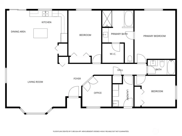 Beautifully designed rambler on a generous third-acre lot at the edge of the city. The open floor plan showcases vaulted ceilings, a spacious island kitchen with stainless steel appliances, and a versatile den/office with French doors just off the main living area. The primary suite offers a relaxing retreat with a separate soaking tub and shower. Enjoy the quiet cul-de-sac setting, level lot, and plenty of room for outdoor living.