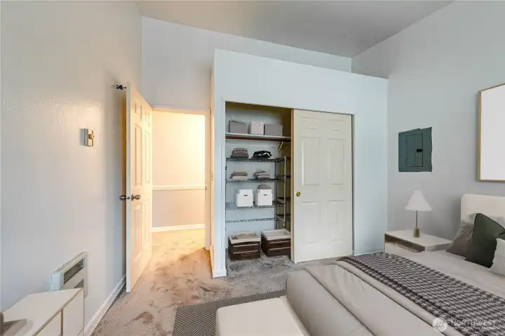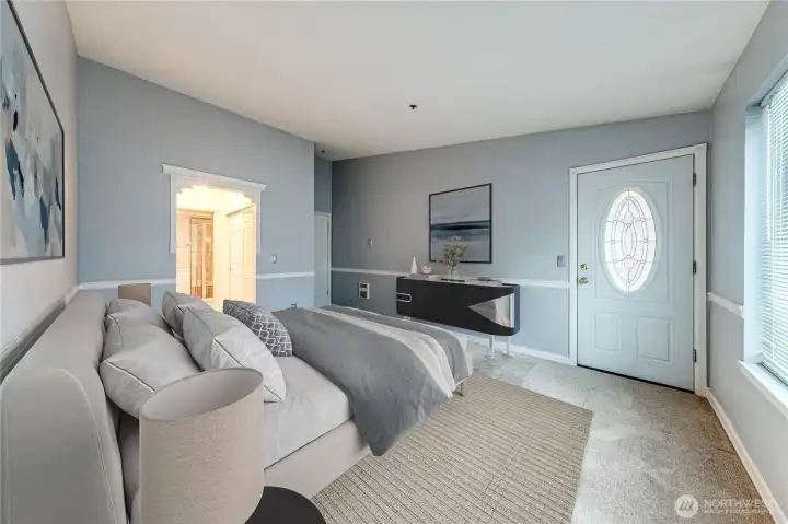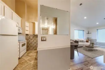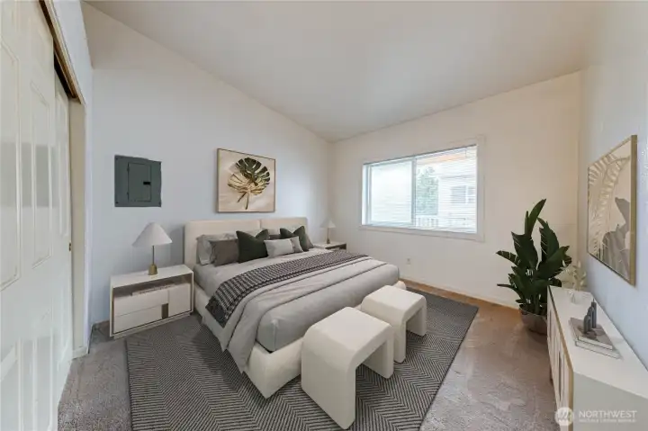 Easy living in Everett in this 2 bed, 1.75 bath top floor, end unit condo in Cedar West. Vaulted ceilings and private balcony combine to create an open, light filled space with a thoughtful layout while the units boasts the rare bonus of an individual garage. Updating throughout including kitchen with stylish backsplash & en-suite primary bath with beautiful tile shower enclosure & double sink! Access private deck from primary bedroom & living room. Gated community at end of private lane with secure entry & HOA dues that include water sewer and garbage. Cat-friendly and below rental cap—perfect for homeowners or investors! Close to Boeing, Fluke, Paine Field, shopping, dining, freeways, transit, Walter E. Hall Park, and everyday amenities.