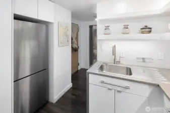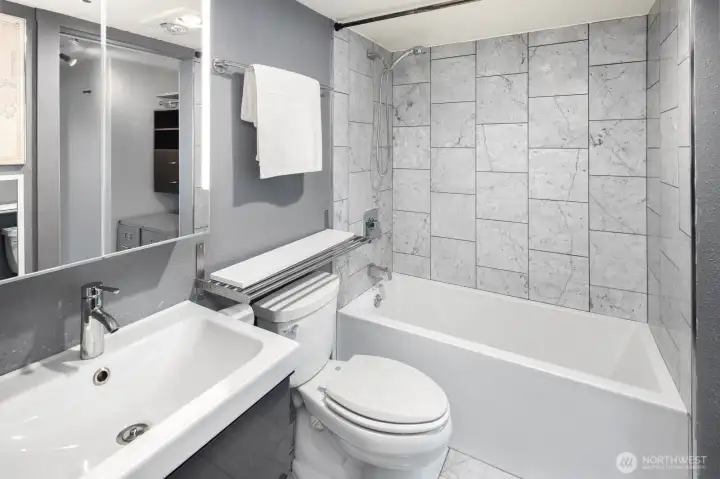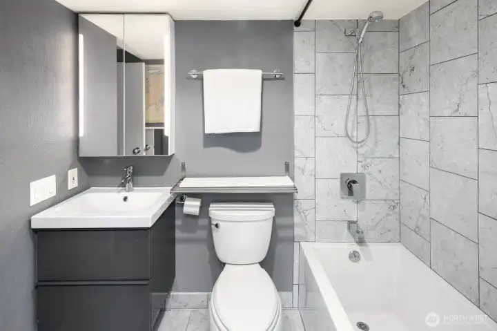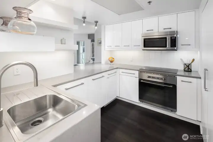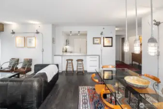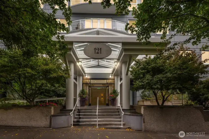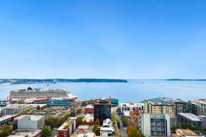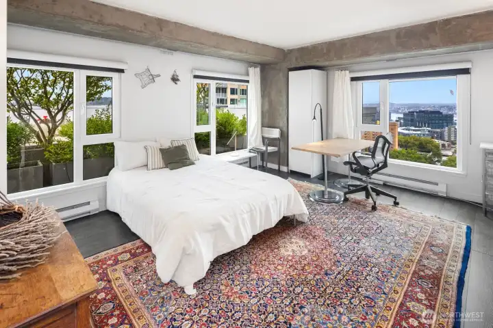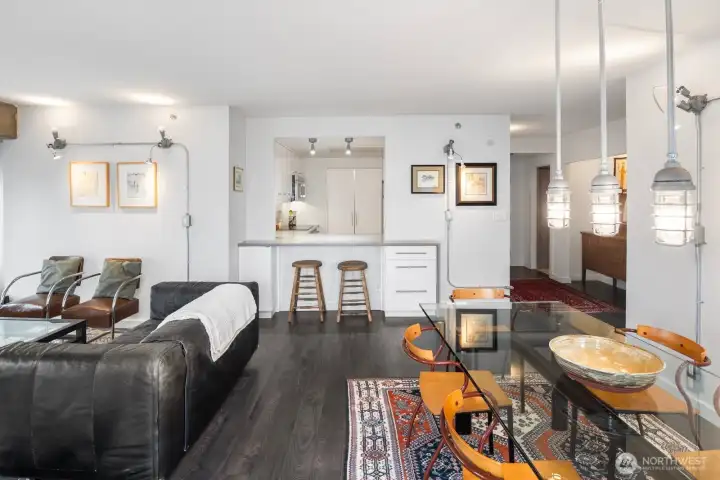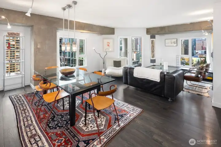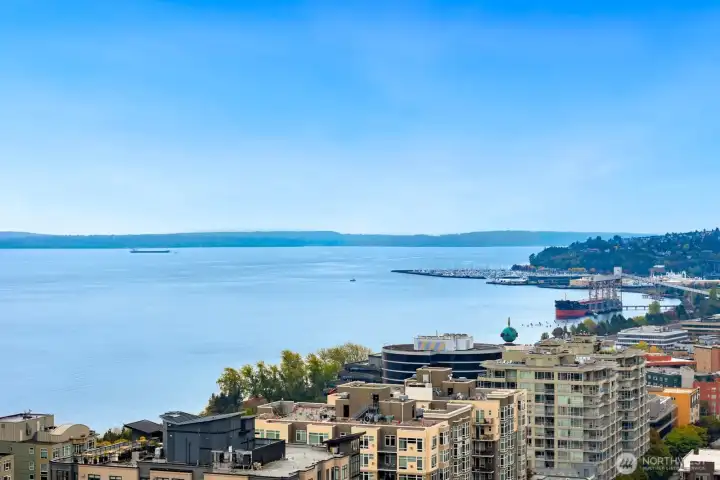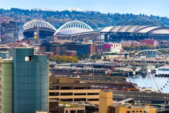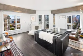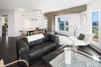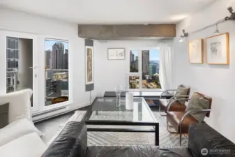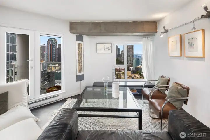 Elliott Bay, Mountain & City Views from this beautifully situated condo at Arbor Place! Expansive windows frame the dynamic Seattle skyline. A sophisticated palette of modern white pairs seamlessly with dove-gray engineered hardwoods and architectural exposed concrete columns. The chef’s kitchen and spa-inspired bath have been thoughtfully updated with sleek finishes and premium details. Convenient in-unit laundry. The spacious primary suite features frosted-glass closet systems for stylish organization. Residents of Arbor Place enjoy a walk-to-everything location plus 24/7 concierge service, fitness center, pool, and expansive community terrace.