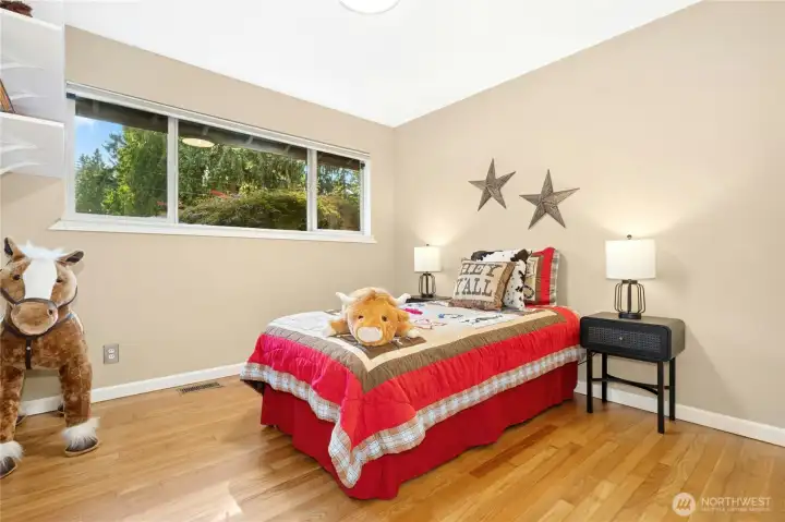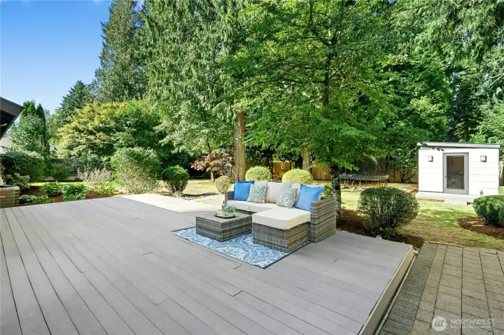 Expanded Bridle Trails home with two master suites and 2021 luxury addition! This 6-bed, 3-bath gem features a new upstairs primary retreat with a spa-inspired bath, walk-in closet, and cozy alcove for office or sitting area. A second main-floor master offers flexibility for guests or multi-generational living. Enjoy hardwood floors, granite finishes, and a chef’s kitchen with double ovens and gas burners. Dual-zone A/C and a whole-house Generac generator ensure comfort and peace of mind. Includes detached office, large shed, built-in gym, libraries up and down, and a large garden with deck, and patio—Footsteps to Bridle Trails Park and Schools.