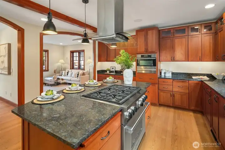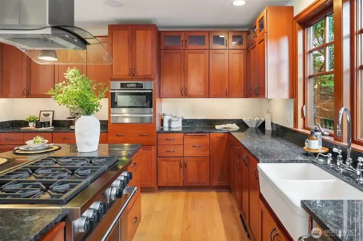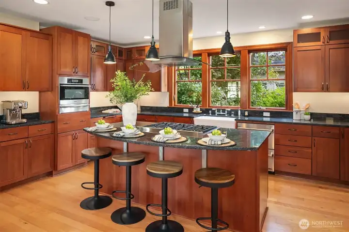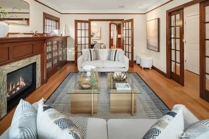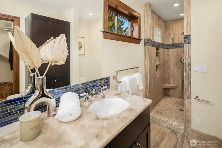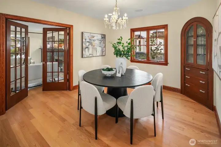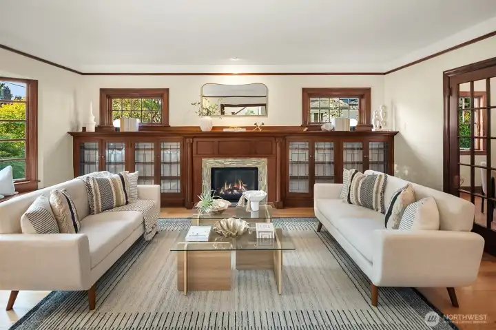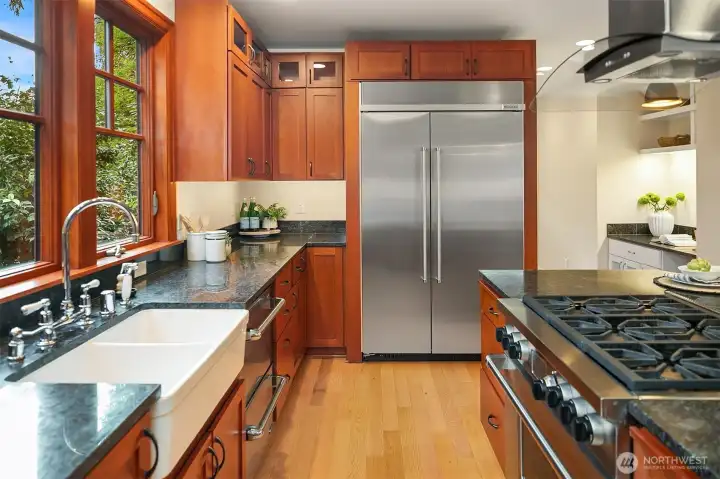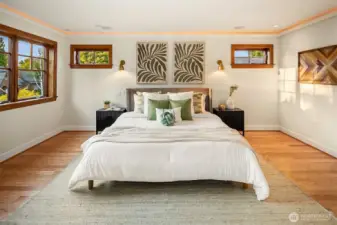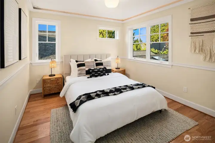 Four stories of true craftsmanship on a coveted block in Bryant. Reimagined in 2009, you’ll find features from the original 1926 Tudor blended with modern comforts in a functional layout. The richness of high ceilings, radiant heated floors and warm wood tones carries throughout. A chef’s kitchen anchors the living space of the main floor while the second floor holds the primary suite, 2 beds, a full bath, laundry and sitting room. Top floor has surprising views, 2 beds, a bath and moody sunsets from the balcony. Lower level could quickly be converted to an ADU; don’t miss the hidden wine cellar. Comfort abounds with 2 gas fireplaces, A/C, and solar. Fully fenced backyard and heated garage. Walkable to cafes, shops and highly rated schools.