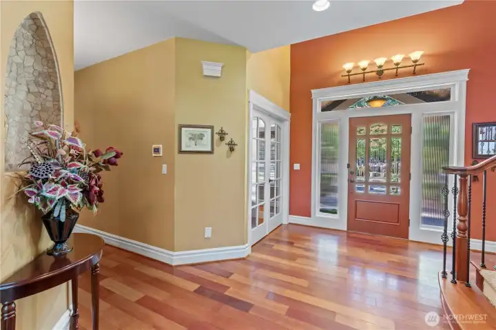 Jaw dropping Custom Quality on 1+ Acre, NO HOA in the heart of Sunrise Puyallup! Experience Elevated Living, eyes immediately soar to the Expansive Vaulted ceilings, ornate Timber beams, built in Niches & Quality design. Hotel inspired, MAIN FLOOR Owners Suite, complete w/wet bar, winefridge, heated flrs, double head walk-in Spa shower & patio. Entertain w/ease INside/out, in your Chefs dream, open concept kitchen w/access to covered outdoor space.Thoughtful design in every detail. Love the Main floor Flex space w/surround sound & patio access too. Main floor office, Up: you'll find 4 more rms, bonus areas, 2 baths & 2nd Laundry option. Endless Storage. Bring the toys, drive thru the garage bay, sprinklers,hot tub & even a dog run.= Home!