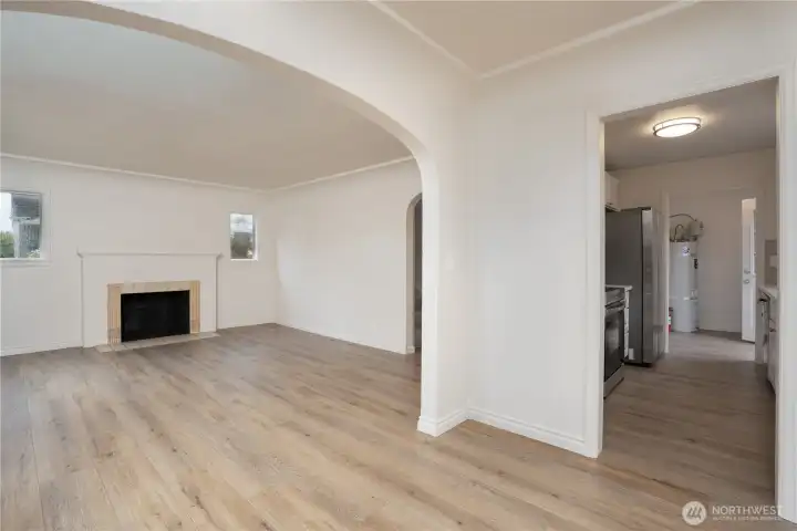 Stunning, fully remodeled 3 bedroom home on an over-sized lot with room to grow! Experience move-in perfection with a desirable primary bedroom on the main floor and two spacious upstairs bedrooms. The updated kitchen shines with crisp white shaker cabinets, elegant quartz counters, a stylish tile backsplash, and all-new stainless steel appliances. Excellent natural light highlights the generously sized living and dining rooms, complete with charming coved ceilings. The home boasts a remodeled bathroom and a large utility room with extra storage space. Enjoy peace of mind and low maintenance with vinyl windows, low-maintenance siding, 100% new flooring, fresh paint, and updated fixtures throughout. Turn-key!