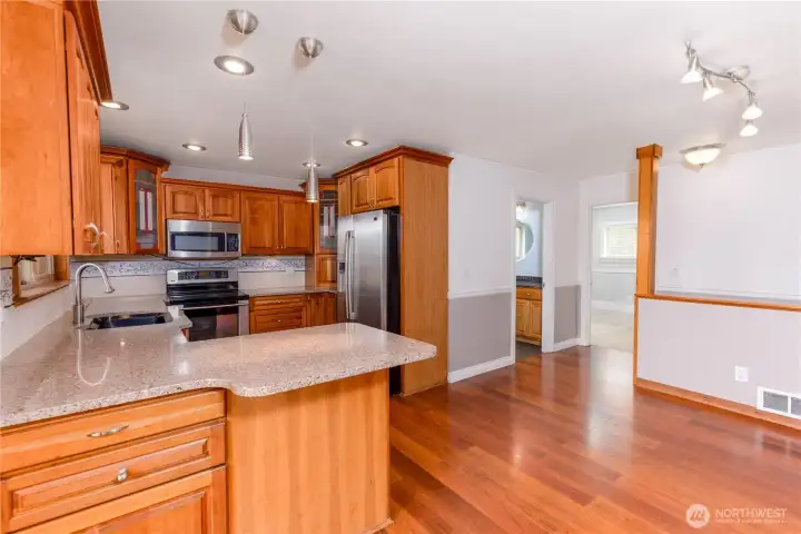 This charming home on half an acre is the perfect blend of privacy and accessibility. Enjoy a large, fully fenced back yard with apple trees and room to garden and play, all while being within walking distance to shopping and great coffee. The large back deck is a perfect spot for watching the drone shows from nearby Carrie Blake Park. A beautifully updated kitchen with granite counters and cherry wood cabinets invites you to come in and create your favorite meal. A new septic system placed in 2023 adds to your peace of mind. Come check out this hidden gem!