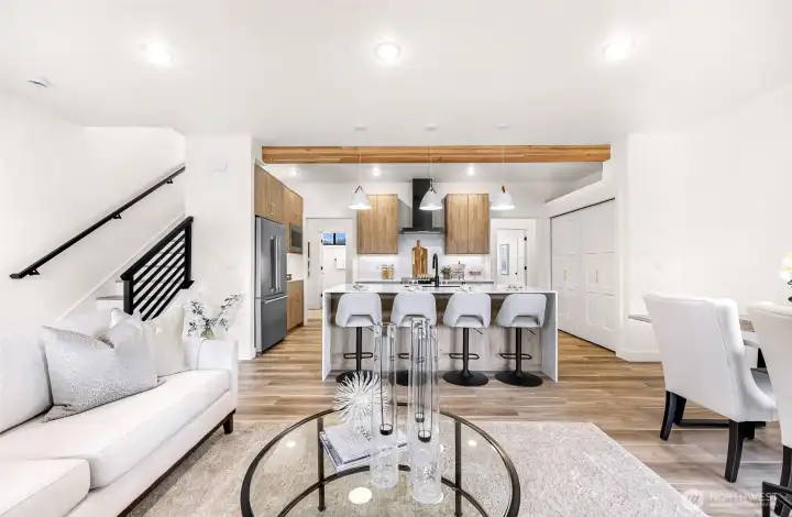 Welcome to River-Walk, a unique community offering attractive design & luxurious finishes located in the heart of picturesque Lynden. Walk or bike a few blocks to downtown's quaint restaurants & stores. Lot 50 offers a comfortable 1762 sqft with 3 bedrooms, 1.75 bathrooms & many upgrades. The gourmet kitchen is highlighted by quartz countertops & island with full waterfall drops. Each bathroom is equipped with a sleek, solid surface shower offering style & low maintenance cleanup. Enjoy outdoor living with a generous deck perfect for hosting friends. With ample space for seating & a ceiling fan to keep you cool during the warmer months. Located less than two hours from Seattle, Vancouver, B.C., Mt. Baker & the San Juan Islands.