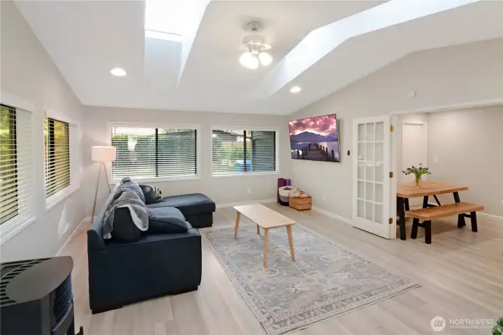 Discover this charming 3BR, 1.5BA rambler near Bonney Lake, thoughtfully updated for modern living. Nestled on a double lot, this home features a spacious family room with skylights and a new pellet stove, perfect for cozy gatherings. Recent additions include a half bath and family room (2009). Enjoy peace of mind with a newer roof. Step outside to a new front deck, private back deck with a fire pit, and storage shed. Positioned within the boat permit zone for Bonney Lake, make the most of lake life with ease.