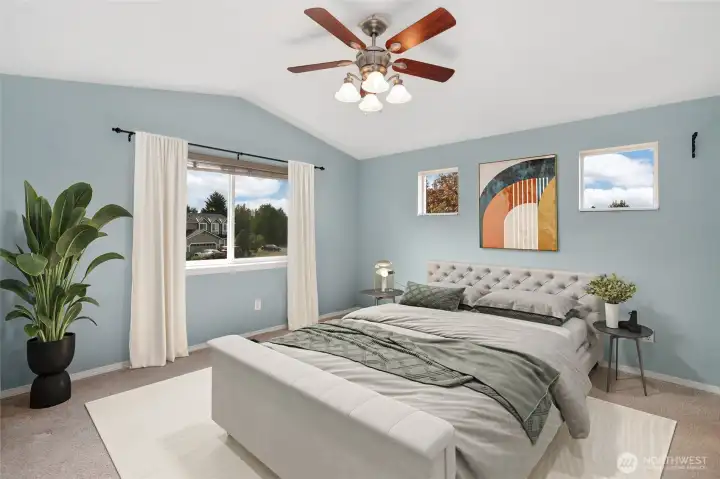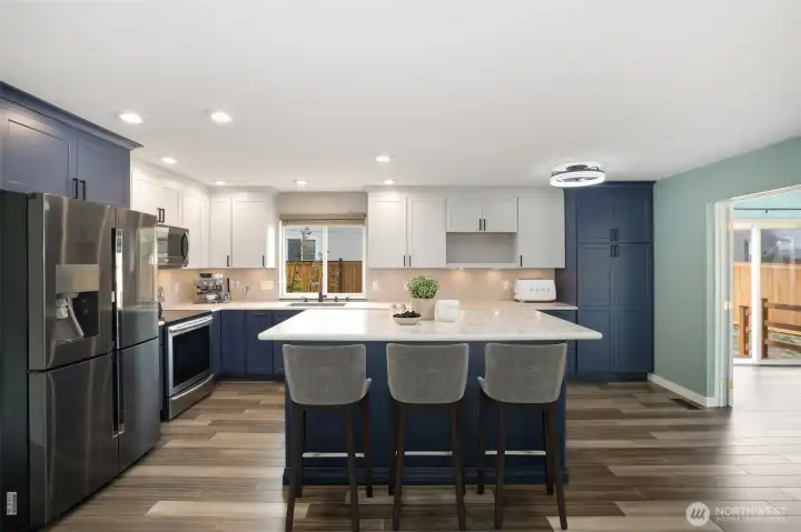 Spacious 2-story home on a cul-de-sac with thoughtful updates throughout! Remodeled kitchen with modern finishes opens to the dining area with French doors. Fresh interior paint and bamboo flooring create a warm, inviting feel. Upstairs, the primary suite features vaulted ceilings and a full bath. Enjoy the skylit sunroom and a private, fully fenced backyard with new fencing on a large lot, perfect for entertaining. Energy-efficient upgrades include a smart panel and solar panels. With 3 bedrooms, 2.5 baths, and over 1,700 sq. ft., this home combines comfort, style, and efficiency in a prime Spanaway location.