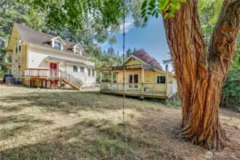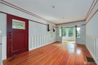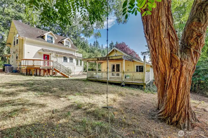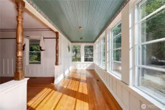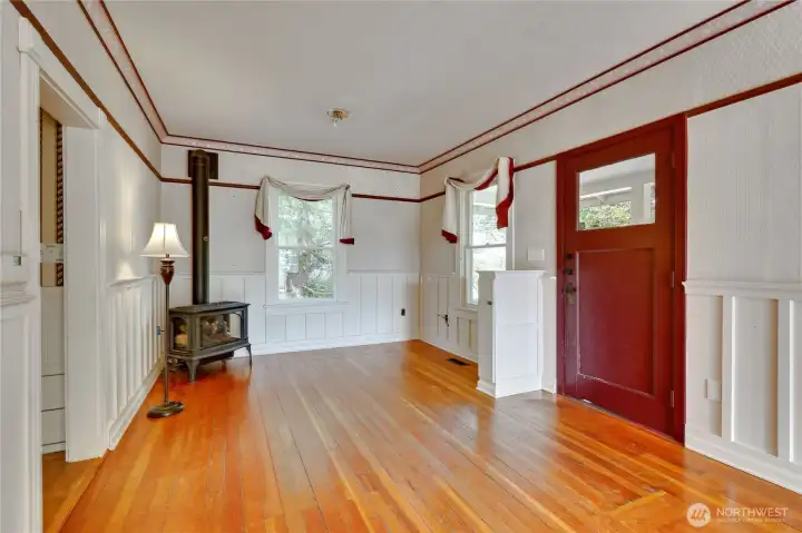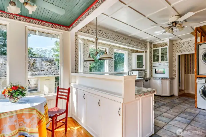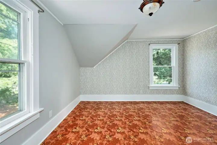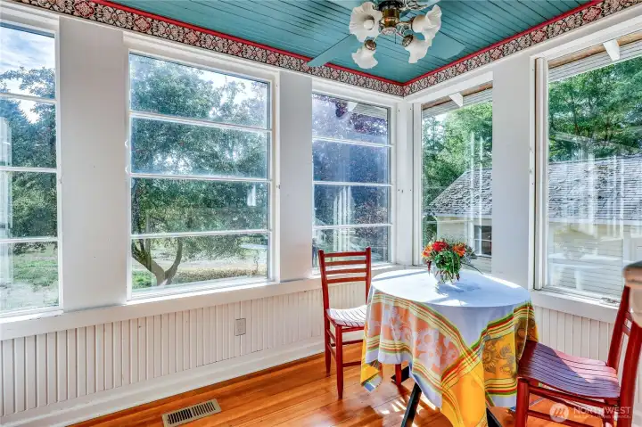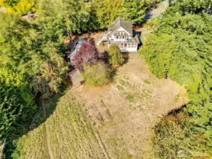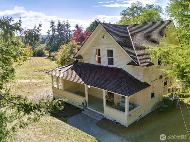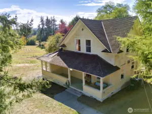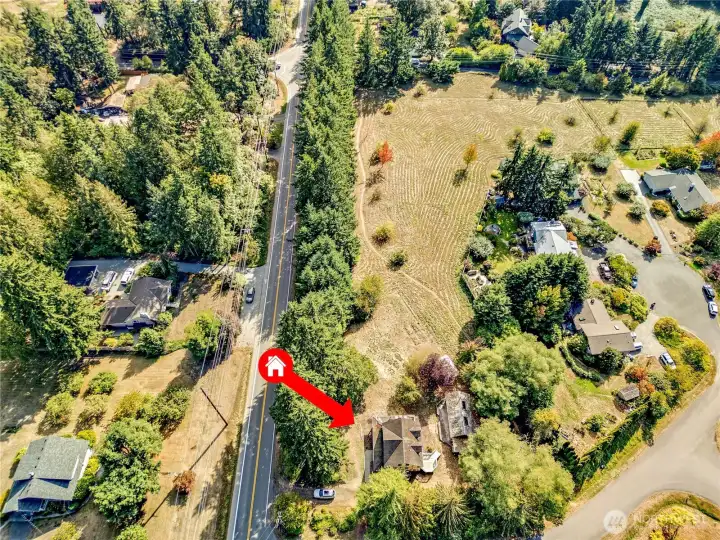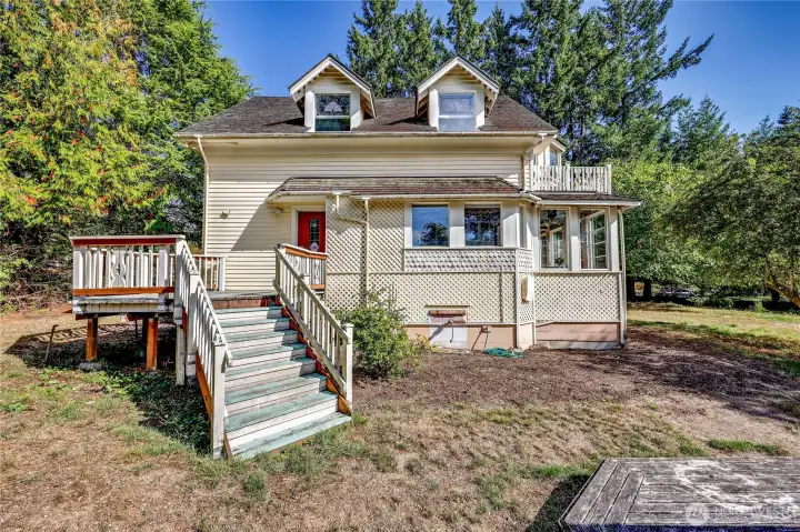 This wonderful sunny and classic farm house has extraordinary charm. Perched at the top of Windsong Loop, this home sits adjacent to a 5-acre open meadow which is neighborhood common space and creates a wonderful buffer. 3 bedrooms and full bath on the second floor. Country kitchen and large living room with wall of south facing windows and full bath on the main floor. Original wood floors and leaded stained glass complete the picture perfect Heritage Bainbridge Farmhouse. Close to Rolling Bay with it's shops and cafes, Ted Olsen Nature Preserve, schools and highway access. This is an excellent opportunity for sweat equity or an investment potential. Bring your vision and energy to this special property.