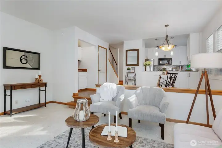 Welcome to this beautifully updated end-unit townhouse in Mountlake Terrace where you’re just minutes from the Lynnwood and Mountlake Terrace light rail stations, I-5, shopping, dining, and everyday amenities. The main level features a stylish updated kitchen, modern tile flooring, and an inviting sunken living room with cozy wood-burning fireplace, perfect for relaxing or entertaining. Upstairs you’ll find a spacious primary suite with vaulted ceilings, custom closet built-ins, and an attached full bath, along with a second bedroom and convenient upstairs laundry. Step outside to your private patio with storage shed, ideal for outdoor enjoyment and extra storage. The home includes two dedicated parking spaces (one covered carport just steps from your front door) and is part of a small, well-maintained 15-home community with low turnover. No rental cap makes this an excellent opportunity for long-term rental or future flexibility. Low HOA dues cover water, sewer, garbage, and common area maintenance, helping keep operating costs predictable. Community amenities include a gazebo, outdoor fireplace, and grill area, and the HOA is pet-friendly, increasing rental desirability. Whether you’re a homeowner seeking comfort and convenience or an investor looking for a light-rail-accessible, no-rental-cap property in a high-demand area, this one checks all the boxes.