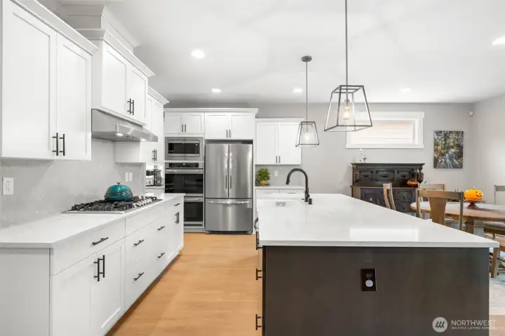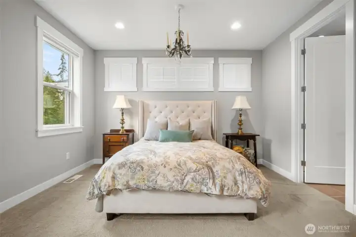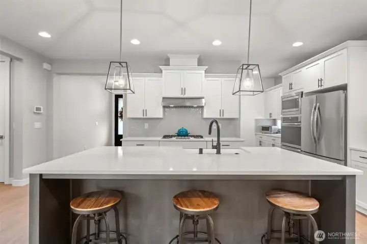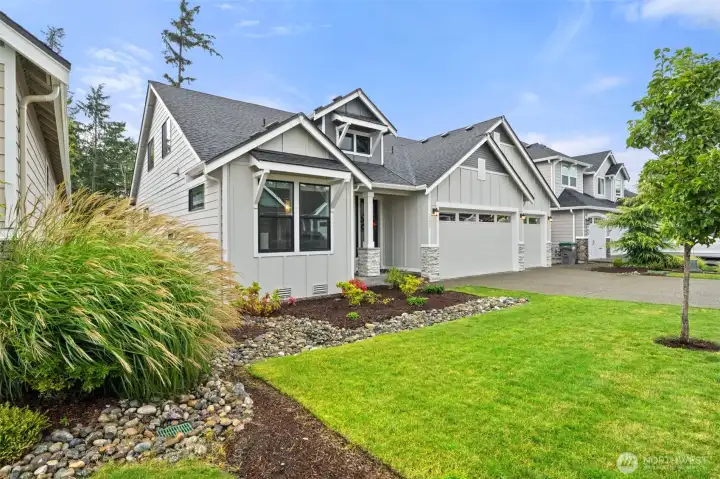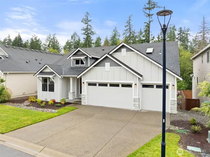 Experience The HENDERSON by Garrette Custom Homes—a stunning modern farmhouse where luxury meets comfort. The sought-after Primary on Main boasts an additional laundry connection, while the Great Room impresses with soaring 11-ft ceilings and an extended butler’s pantry. Upstairs you’ll find two guest suites, a spacious bonus room, and abundant storage. Enjoy seamless indoor-outdoor living with shiplap-detailed fireplaces, black-framed windows, and a covered deck overlooking a serene greenbelt. The low-maintenance landscaped yard with sprinkler system creates your private oasis. Complete with a 3-car garage, this masterpiece blends style, convenience, and timeless elegance.