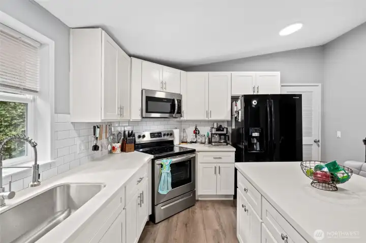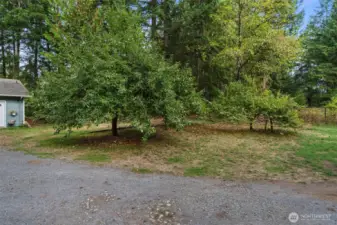 Beautifully updated 3 bed, 2 bath home on a full acre! Features include an open floor plan with vaulted ceilings, fresh interior paint, new LED lighting, and walk-in closets in every bedroom. Renovated bathrooms and an updated kitchen with stainless steel appliances and granite countertops. Enjoy a variety of fruit trees including apple, peach, and cherry. Property includes a permitted 404 sq ft detached studio unit with its own kitchen and bath—perfect for rental income or multigenerational living. Spacious detached 2-car garage, small shed, and newly built deck. Just 30 minutes to JBLM!