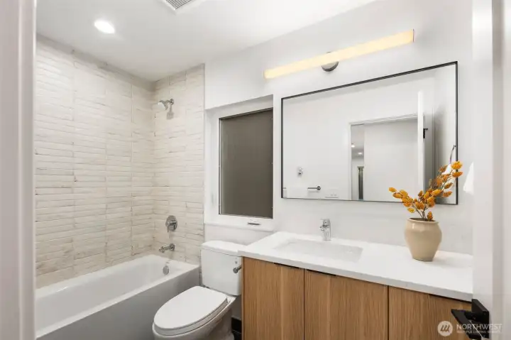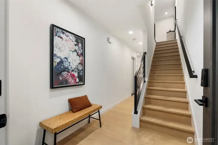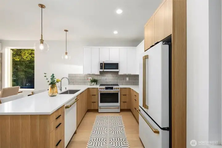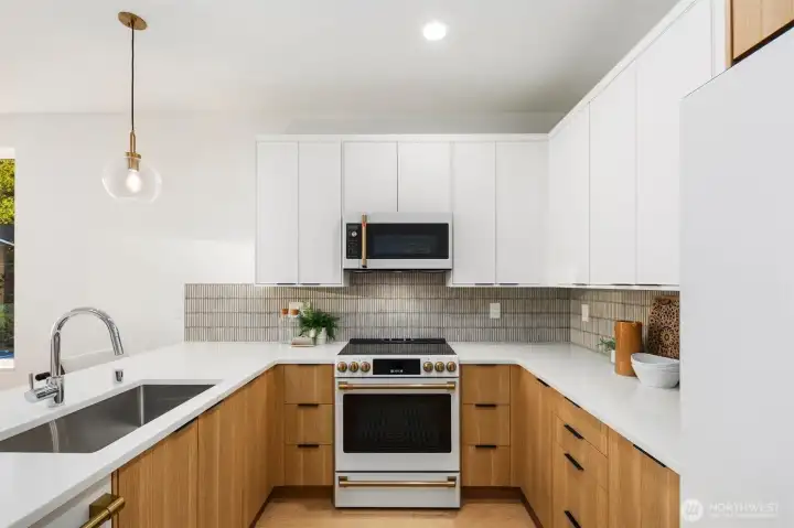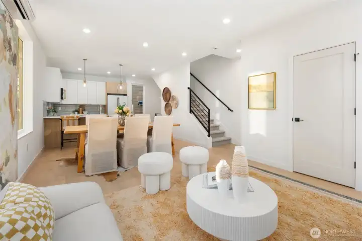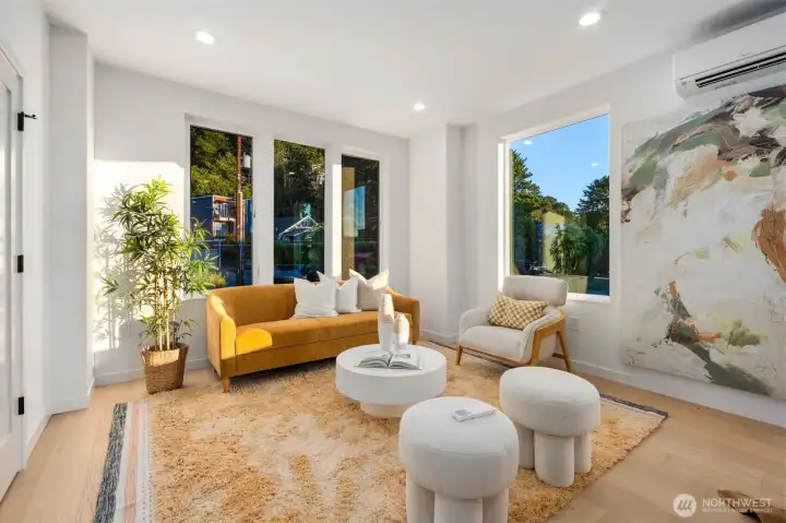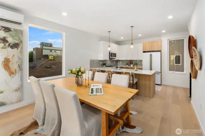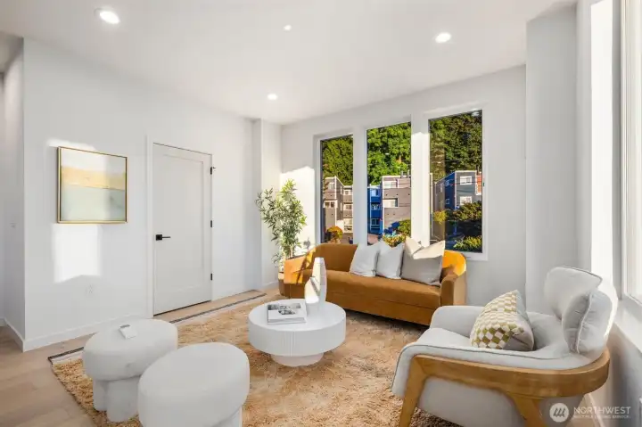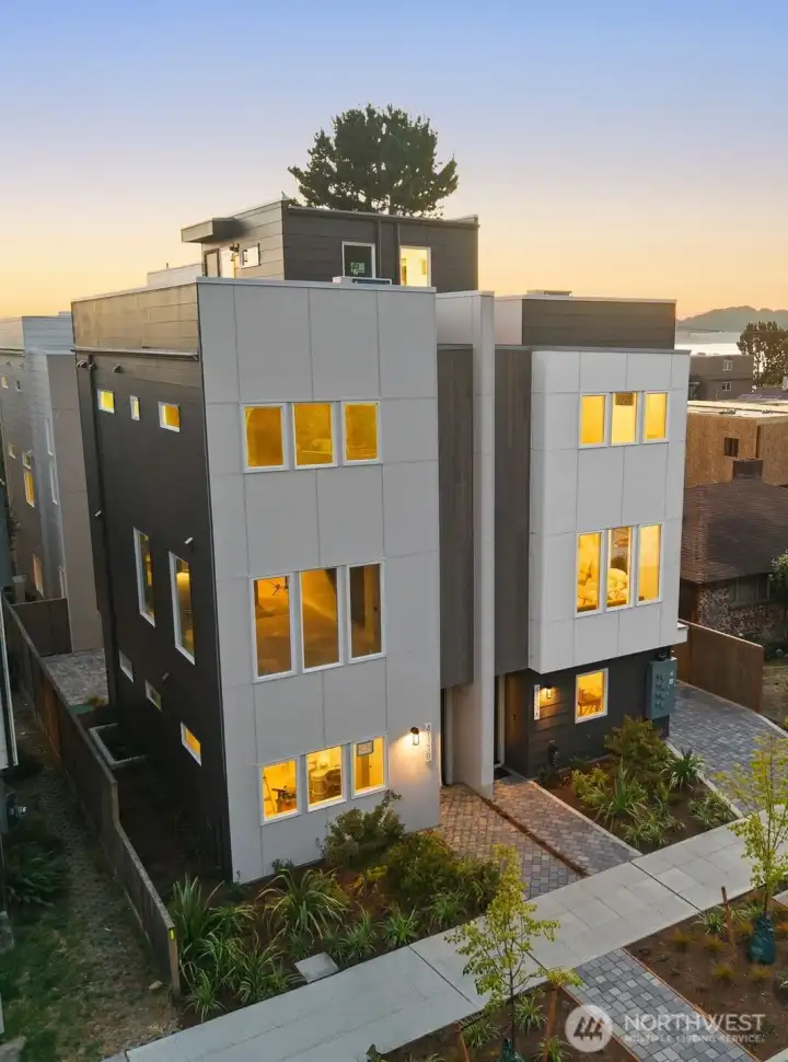 Last Townhome Remaining!! Stunning Olympic Mountain sunsets, exquisite interior designer influenced finishes showcase these custom residences. Centerpiece kitchen with Bellmont cabinetry, white Cafe appliances accented by stylish fixutres & backsplash & soft tone hardwood floors. An open floorplan with tall vertical windows captures the abundance of natural light. Lutron Caseta smart lighting. Primary w/ dual vanity bath, heated floors, walk-in shower. 2 additional bedrooms provide an excellent opportunity for guests or a home office. Beautiful rooftop decks to enjoy the amazing sunshine against the backdrop of the Sound. Dedicated 1-car parking EV prepped. Walk to the beach/bike to Alki and enjoy the unique splendor of West Seattle.