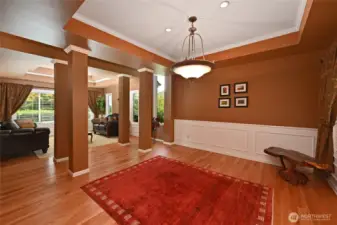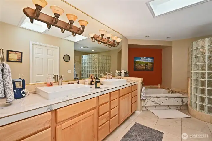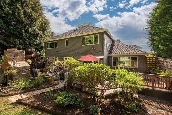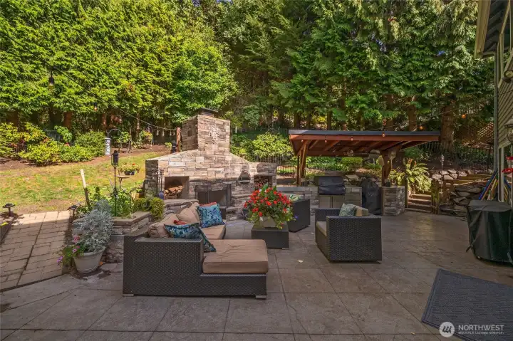 See pride of ownership in this beautiful home with tray ceilings, columns and wainscoting. Chef's kitchen with slab granite, SubZero refrigerator, Dacor oven, large center island, 5-burner gas cooktop, beverage bar & wine cooler. Relax in front of your gas fireplace with travertine surround in the family room. Luxurious primary bedroom w/5-piece bath, heated marble floors. Open the French doors to your amazing backyard with an outdoor kitchen with Italian pizza oven, wood fireplace, Blazer 6-burner barbeque, hot tub, fruit trees, raised beds, fully fenced, bordering a greenbelt. 50-year roof and home warranty. Quick access to shops, dining and freeways. Come make this gem your own!