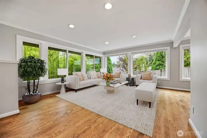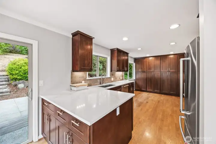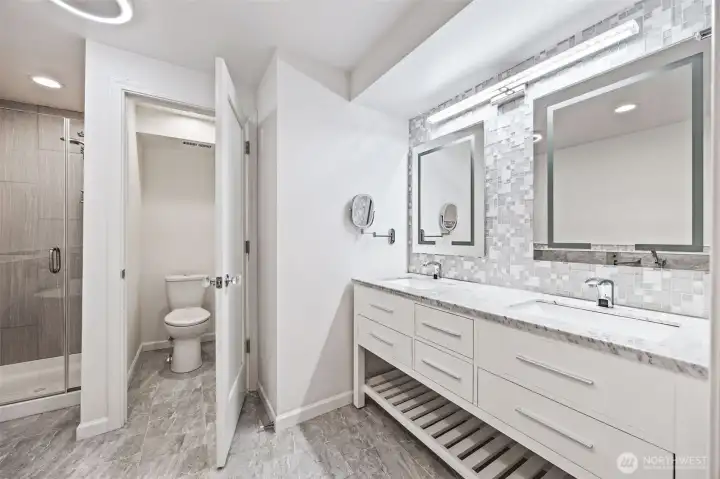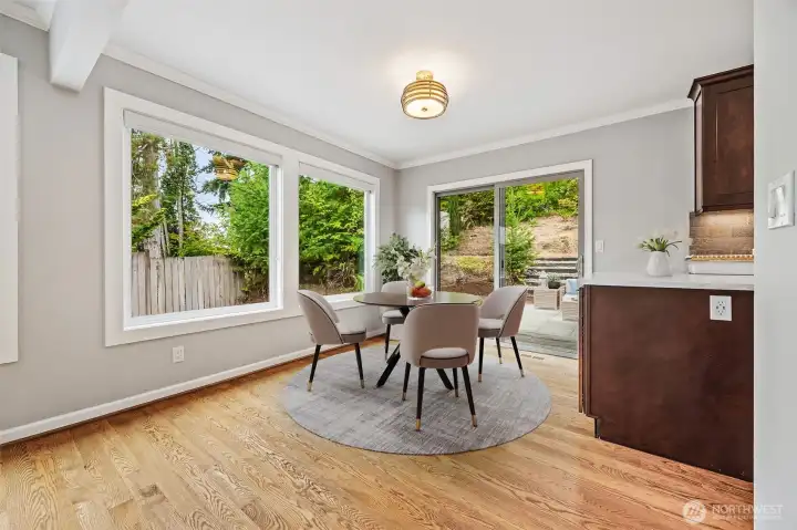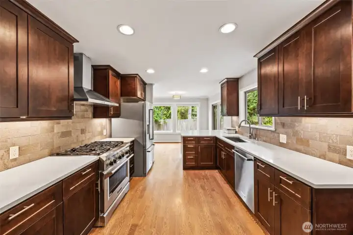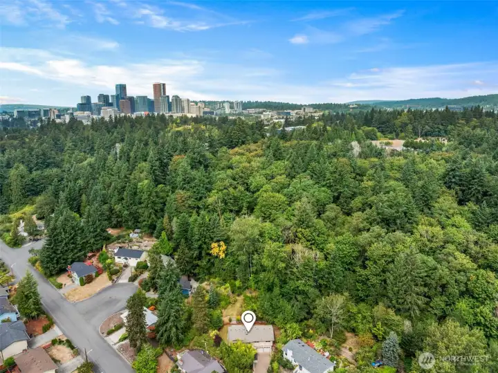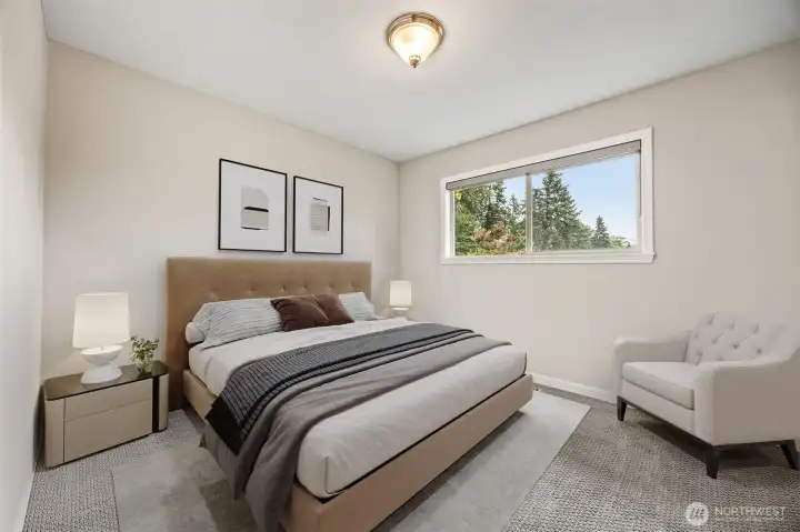 Nestled on a quiet cul-de-sac in Bellevue, remodeled, move-in ready home invites you into effortless living. Step inside to soaring natural light, open floorplan w/ 2 master suites - ideal for guests, multigen, or work from home. The kitchen shines with quartz countertops, professional 6-burner gas range, and abundant storage. Newer roof, updated plumbing, and a long low-maintenance brick driveway give peace of mind. Outside, escape to your private backyard backing a treed park, lush greenery, and endless potential. Oversized garage includes EV charger capability. Just mins to downtown Bellevue, I-405/Highways, Botanical Garden. Under top Bellevue schools & across behind International School. Pre-inspected. Ready to welcome you home!