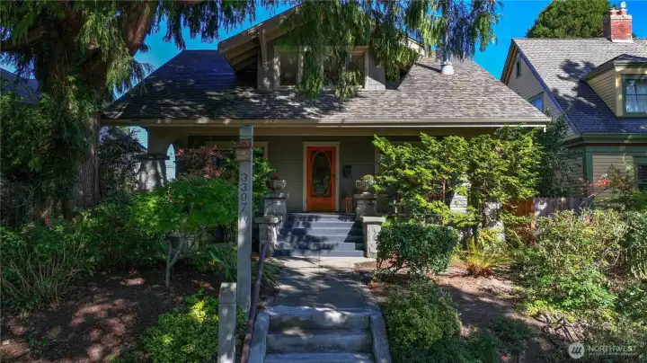 Ideally located near the heart of Proctor District & just steps from coffee shops, dining, boutiques & cultural hotspots this home is perfect N Tacoma living! This Craftsman's wide front porch invites you to come & sit awhile. Beautiful front door draws you in & the original woodwork, plate rail, & box-beam ceiling says this is HOME. Kitchen floor is Marmoleum. Refinished hardwood & fir floors + stairs. Enjoy an abundance of natural light from the Half-moon windows gracing two bedrooms. Lovely backyd with room for gardening or playing. Plumbing & electrical have been updated; newer sewer line & water line for worry-free living. Originally built as a studio, the newer garage with EV charging has additional parking on parking pad. Charming!