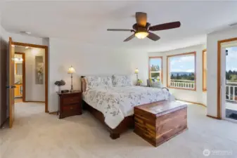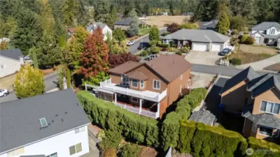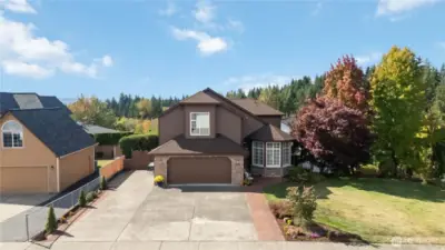 Welcome to this 2,180 sq ft, 3-bed, 2.25-bath home in sought-after Mt Brynion Estates. The open main level features a spacious great room, dining area, and a well-equipped kitchen with double oven, convection microwave, cooktop, and eating bar. Enjoy year-round outdoor living on the covered deck with hot tub. Upstairs, the oversized primary suite includes a walk-in closet, private bath, and access to the upper-level deck. Two more bedrooms and another full bath complete the second floor. The oversized garage features finished floors, a sink, and ample storage. Lower level includes a hobby room and storage space. Roof replaced in 2020. Corner lot with RV parking and second driveway with covered parking. A must-see!