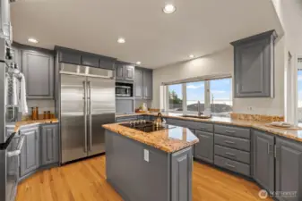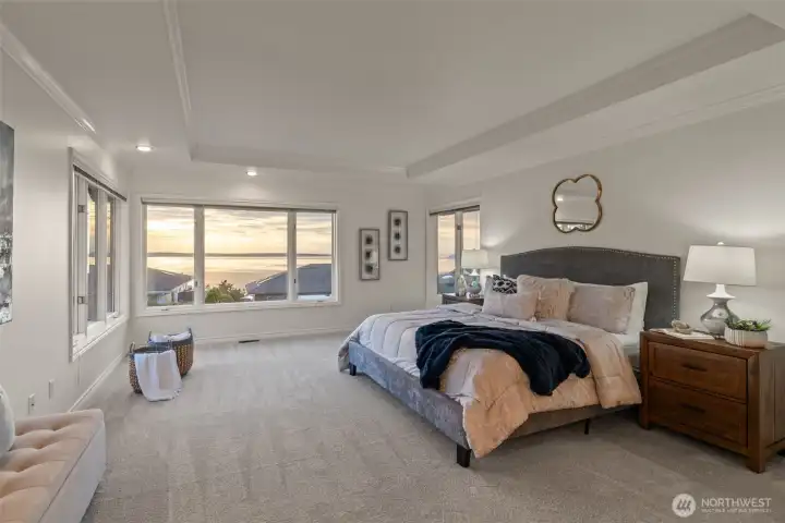 Puget Sound and mountain views frame this stunning Picnic Point home. Designed for both comfort and entertaining, it features spacious living and dining rooms, a bright kitchen, and a welcoming family room. The main floor hosts a private primary suite with its own bath, while the lower level offers a guest room with private entry, plus a rec room with fireplace and wet bar. With 5 bedrooms, 4 en-suite baths, a 3-car garage, and view decks on both levels, there’s room for everyone. Enjoy the neighborhood park complete with pond, play area, and game courts—just steps from your door.
