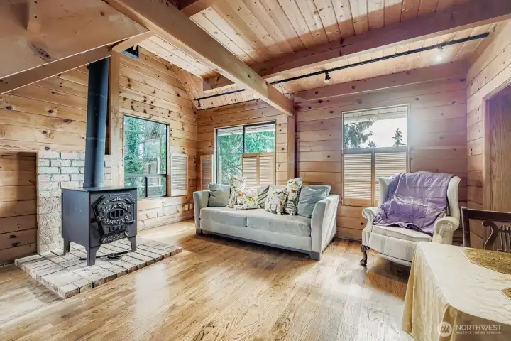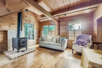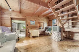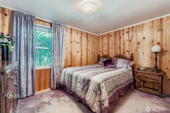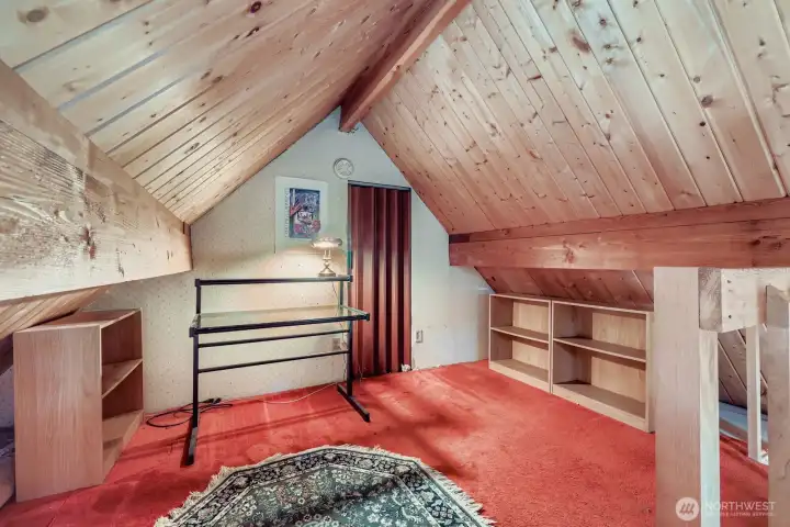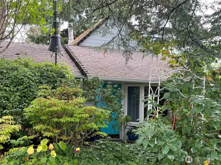 RARE OPPORTUNITY! Charming house at a GREAT PRICE!! DISCOVER this 2-bedroom 1-bath house nestled away among mature vegetation in a quiet neighborhood. The A-framed chalet-style addition features an upper-story loft with access to roomy storage. The garage allows for one vehicle or workspace. There is plenty of parking in front of the house. The treed backyard gives you privacy and space to entertain. The living room bay window with special prism glass adds artistic charm. A pellet stove gives extra heat. Enjoy the decorative marble floor in the bathroom. The knotty-pine walls give a homey, comfortable feel. By the way, light rail is only a 10-minute walk and grocery shopping is nearby with no need to make a trek on the freeway.