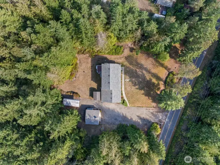 Experience seclusion and serenity in Discovery Bay! This meticulously maintained 2,500 square foot Colonial-style home is nestled on 5 private acres offering privacy and endless possibilities. Large detached shop with built-in storage perfect for all your toys, hobbies, or car collection. Attached 2-car garage with custom workshop. Amenities include 50 year roof, new H20 tank in 2025, and generator ready system. With its classic design, generous interiors, and tranquil setting, this property is the perfect blend of comfort, privacy, and Pacific Northwest living. Minutes to Discovery Bay Golf Club and ferry terminal. Pre-inspected and ready for the next owner.