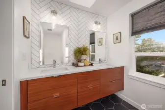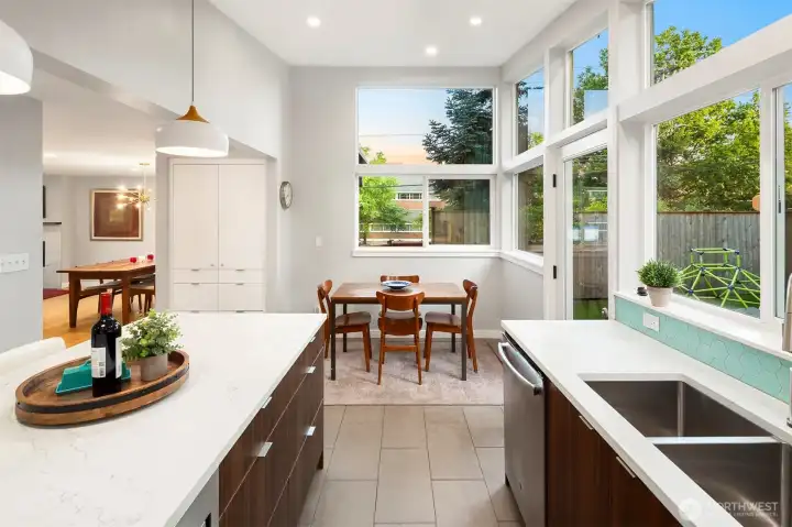 Completely reimagined in 2019, better than new construction, this Wedgwood home checks all the boxes: modern updates, fantastic floor plan, central location, spacious fenced backyard & deck. 5 bedrooms, 3 baths, & flexible living across three levels. The open kitchen features bar seating, gas cooking, dining area, & seamless flow to the backyard deck, turf lawn, sauna, & cedar shade trees. 2 beds on the main, large living room w/gas fireplace, 3 beds up with bonus room, plus a lower-level flex space with separate entrance & ADU potential. Attached garage with EV charger & upgraded 200-amp panel. Walking distance to: great schools, NE Library, Dahl Playfield, grocery, cafes, Fitness & neighborhood favorites in the heart of Wedgwood!