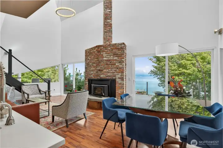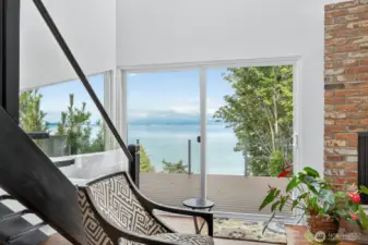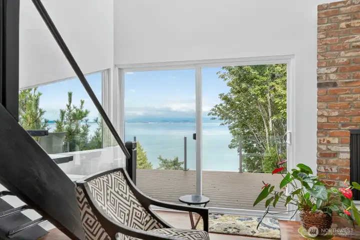 One of a kind architectural masterpiece rebuilt for quintessential island living. Perched high above Port Susan Bay amidst resident eagles with sweeping water and mountain views this Camano Country Club home is pure magic and a sublime confluence of modernist clarity and cozy living. Private beach access nearby. Main level offers soaring ceiling, complete radiant floor heating throughout, customized metal staircase, sweeping windows to view whales, eagles, & birds in a serene, private setting. Upper expansive entertainment deck with thoughtful glass panels maximizes outdoor living space. Private entrance to MIL downstairs w/2nd kitchen, bedroom, full bath, w/d, deck. Tucked on the lee side is the kitchen garden, a true cultivated sanctuary.
