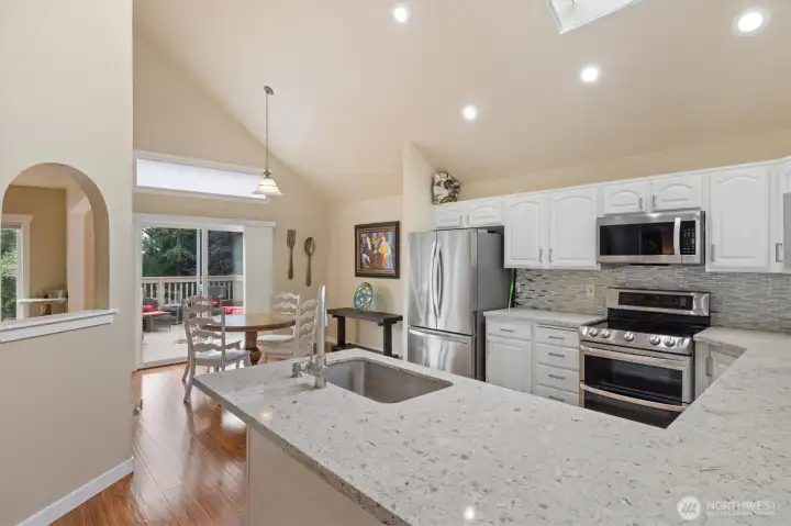 Welcome to Discovery Point, a coveted gated community in a prime location! This fully pre-inspected 5-bedroom + office, 3,242 sq ft home sits on a lush .36-acre lot w/ hardiplank siding & fresh curb appeal: new garage doors, newer windows, & a statement front entrance. Inside, quartz counters, plantation shutters, & custom blinds elevate each space. The large kitchen shines w/ new appliances, soaring ceilings, & a skylight that floods the room with light. Two primary suites (one on the main w/ soaker tub) offer flexible living, while the daylight basement invites multi-generational potential. Enjoy large yard w/ mature landscaping, fruit trees, & storage shed. Closely located near Madrona Links Golf Course, schools, Hwy 16, & shopping!