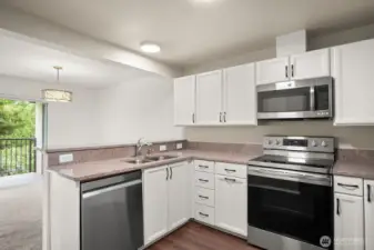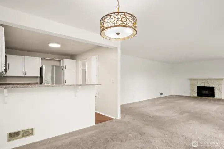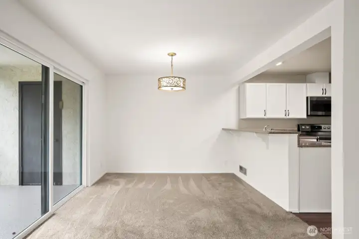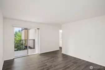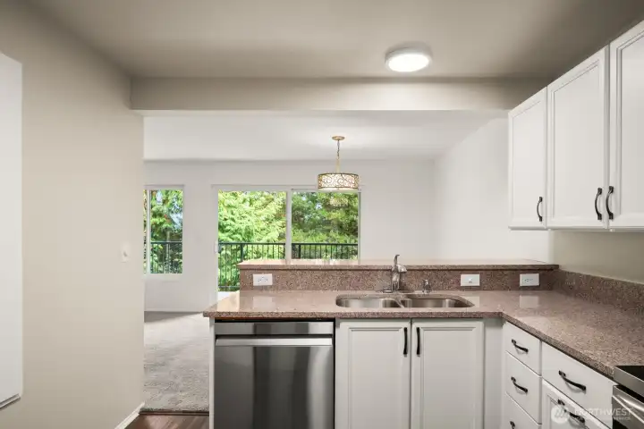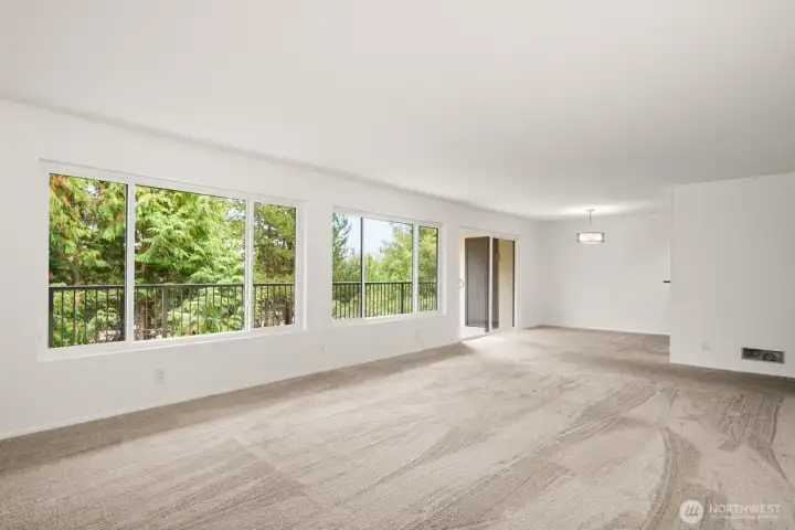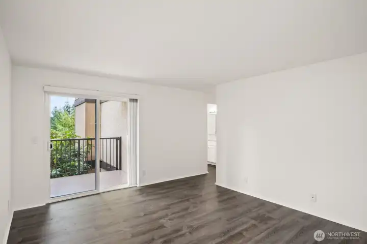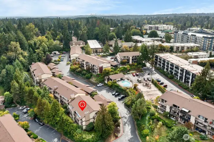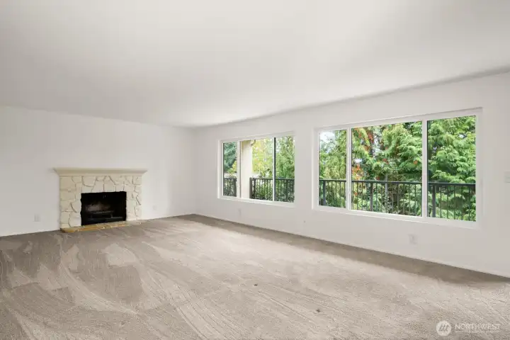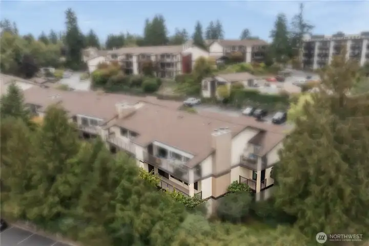 This light-filled condo offers it all! The sun-drenched living space boasts a stone, wood-burning fireplace, open floor plan, & sprawling windows, perfect for entertaining. Right off the dining area you’ll find an impressively large, secluded balcony equipped w/ additional storage closet & wooded view. All three bedrooms as well as the rest of the unit are highlighted by fresh paint & LVP floors. The primary suite is your own personal oasis w/ ensuite bathroom, walk-in closet & a second, private balcony. Just steps away from the unit is access to the outdoor pool, common garden space & a renovated club house for large gatherings. This quiet complex is located in a quiet, dead end street conveniently close to I5 and common amenities!