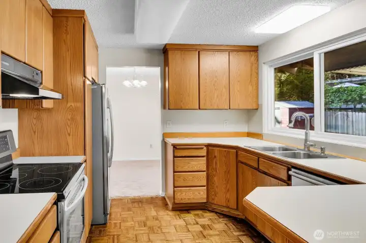Discover an incredible opportunity to create your dream home in this spacious 3-bedroom rambler, set on a sunny oversized corner lot. Thoughtfully designed with both formal and casual living spaces, the home offers a welcoming family room with fireplace, a dining room ideal for entertaining, and a kitchen that flows easily to the patio for seamless indoor-outdoor living. Bedrooms are generously sized with plenty of storage throughout. Step outside to a fully fenced yard complete with sprinkler system, expansive covered patio, and space to garden, play, or simply unwind. With no HOA, this turn-key property combines flexibility, convenience, and lifestyle. Located just minutes from shopping, dining, parks, schools, and commuter routes.