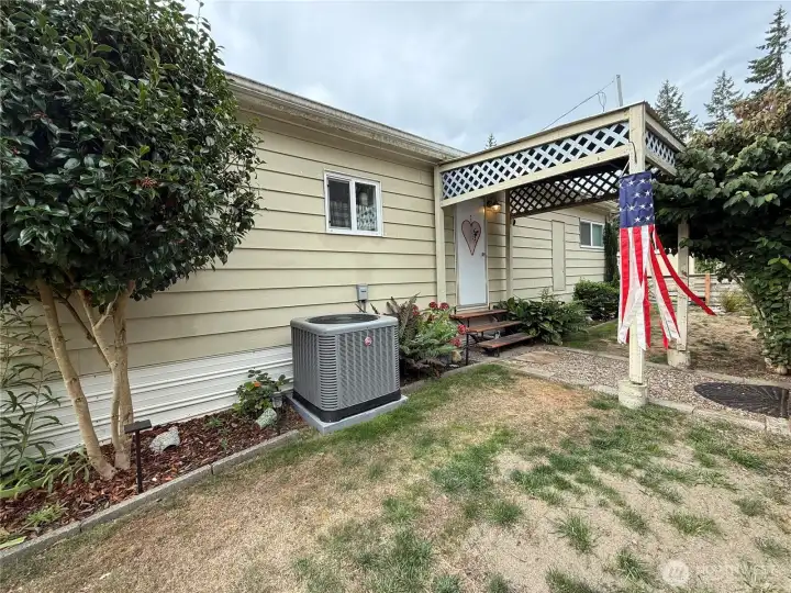 Move-in ready and fully updated! This beautifully renovated home in a family park offers modern finishes and thoughtful extras. Inside, you’ll find quartz countertops, new cabinets, updated bathrooms, and a spacious primary suite. The home includes central AC, Bluetooth bathroom speakers, a newer washer, dryer, and unused oven. The second bedroom is well-sized, and the included bunk bed makes it move-in ready. Outside, the corner lot has mature landscaping, fruit trees, garden space, and a fully fenced yard. Extras like the grill, porch furniture, signal booster, and Arlo security system all stay. The paved community features a private playground for residents. This one is a must-see! Water and sewer included in $1,025 lot rent.