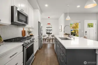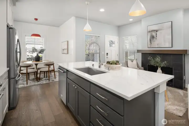 Now offered at reduced price! Incredible value on Sammamish Plateau! This thoughtfully designed condominium lives like a single-family home, blending privacy, comfort, and low-maintenance living, with exceptionally low HOA dues among the lowest in the area and NO rental cap! Nestled in an intimate enclave of 16 distinctive cottages, this home offers a peaceful, one-of-a-kind setting in Sammamish. Each residence includes a private one-car garage in a detached garage bay plus a guaranteed second parking space within the community. A charming covered front porch welcomes you into light-filled interiors. Cozy living room with gas fireplace flows seamlessly into the stunning modern kitchen featuring quartz countertops, SS appliances, gas range, oversized island, walk-in pantry, and sunny dining nook. Main level also includes a versatile bedroom, ideal for home office, media room, or third bedroom, along with a beautifully appointed ¾ bath. Upstairs, vaulted ceilings enhance spacious primary suite, second bedroom, a full bath and conveniently located washer and dryer. Efficient systems include a heat pump with A/C for year-round comfort & tankless H2O. Gorgeous community clubhouse provides additional space for gatherings and entertaining. Located near YMCA, Library, Town Center, Metropolitan Market, Trader Joes, parks, and served by top-rated Issaquah schools. An exceptional opportunity at this new price, don’t miss your chance to own in this unique 16-home community.