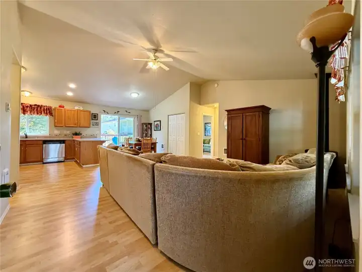 Turnkey/Furnished Residence across the street from Duck Lake front homes at Ocean Shores, Washington! Fantastic setting near the Bayshore clubhouse, GH Bay & Chinook Lakeside Park w/fishing docks, boat launch & dog park. Just a bit further to our 18-golf gold course, beach or town center. 1,353 sf plan with 3 bedrooms, 1.75 bathrooms, and a 2-car garage. Enter into the great room with wall of windows and free-standing propane stove. The kitchen features Corian counters, plenty of storage and prep space as well as a breakfast bar. Dining area with door to back deck and yard. Private primary ensuite w/shower is located on opposite side of home from the 2 guest bedrooms and full bathroom. 7,221 sf lot w/mature landscaping. Leaf Guard gutters.