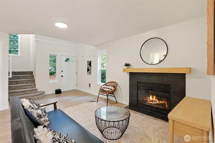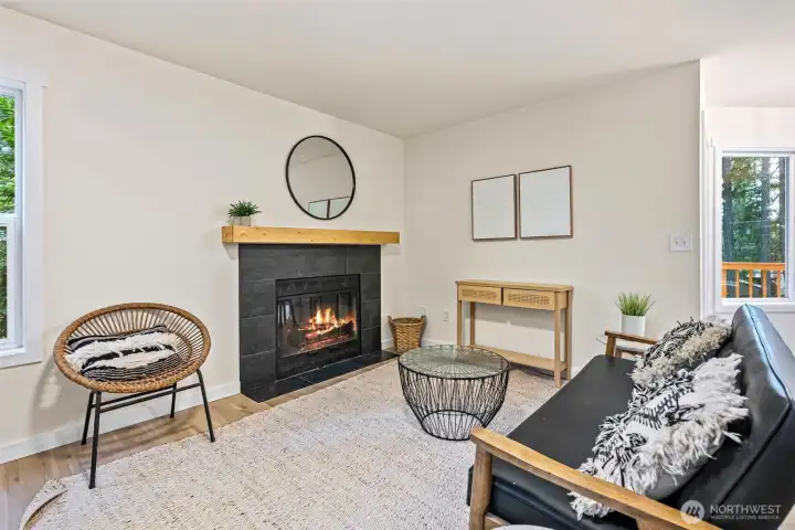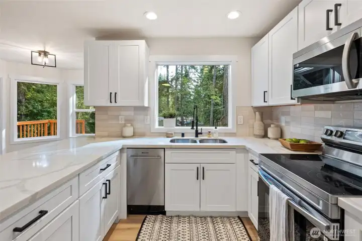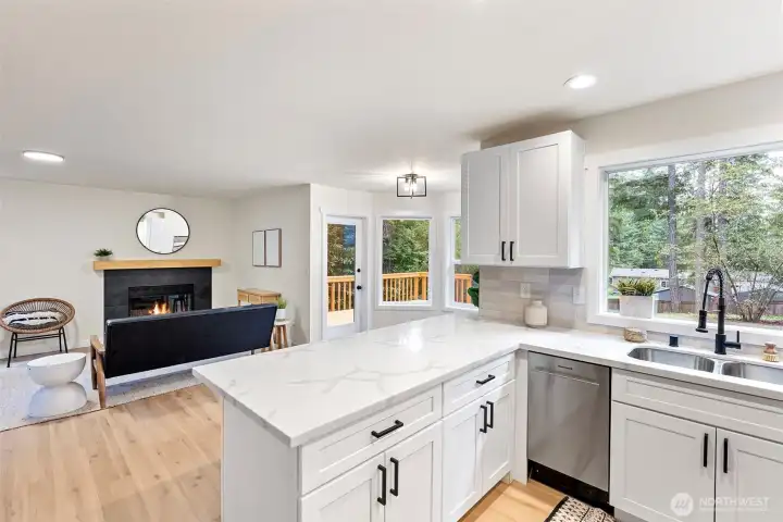 Welcome home to this Lake Holiday Charmer. This Home features 3BR, 2.5BA and gives you 1,388 SF of open concept living. Brand new Kitchen with Custom White Shaker Cabinets, Quartz Counters, SS Appliances, Large Peninsula and Subway Tile Backsplash. The cozy main floor living room has a wood burning fireplace and new vinyl plank flooring throughout. Second level has a large primary bedroom with En Suite, walk-in closet, and 2 more BRs share a Jack n Jill bath. Newer paint and carpet. Fully Fenced yard that is 1/3 of an acre with Large deck and plenty of room to play. Nestled on a quiet street. Right around the corner from lake access and the community park!