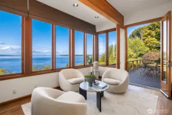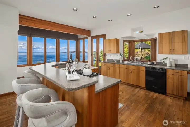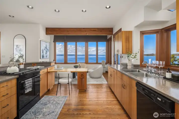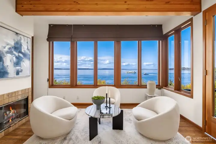 First time on the market! Panoramic views of Alki, Puget Sound, and the Olympic Mountains are the daily backdrop. Custom-built, this 2,700 sq ft retreat, 4 fireplaces, and offers plenty of parking! The primary suite boasts serene water vistas, a gas fireplace, spa-like bath, and custom sauna. Expansive windows and decks invite the outdoors in. A rare opportunity to experience timeless Pacific Northwest craftsmanship with Alki Beach just steps away. Designed for both relaxed living and elegant entertaining, the open spaces flow seamlessly indoors and out. A rare opportunity where timeless Pacific Northwest craftsmanship meets the beauty of the Sound.