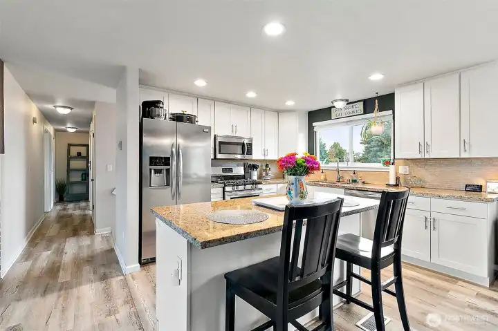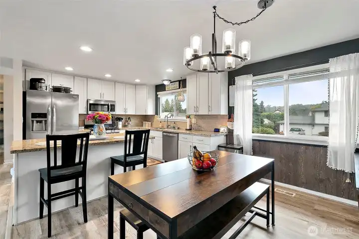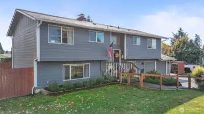 Welcome to this spacious 5-bedroom remodeled home in the heart of downtown Puyallup. Perfectly situated on a large corner lot, this home offers an open-concept layout ideal for everyday living & entertaining. Upstairs you will find a bright living room w/ a fireplace flowing to the kitchen & dining, 3 bedrooms & 2 baths. Downstairs offers 2 bedrooms, bath & a large family room w/ a 2nd fireplace, creating the perfect space for guests, media room or multi-generational living. Step outside to a large deck overlooking the huge fully fenced yard, perfect for gatherings or quiet evenings at home. AC & RV parking add to all the perks! With updates throughout & a prime location close to parks, shopping & dining – this home is the complete package!