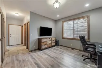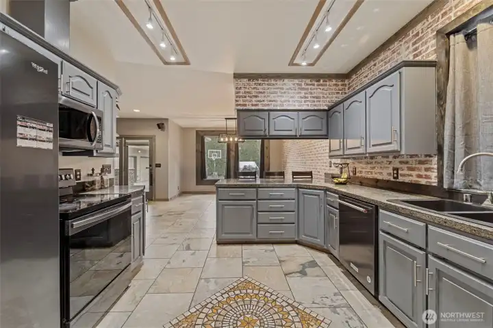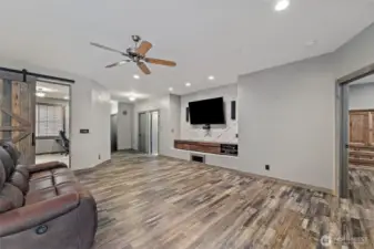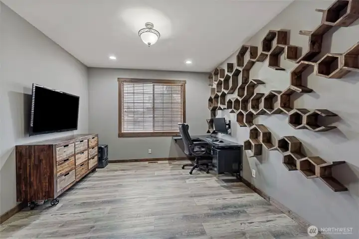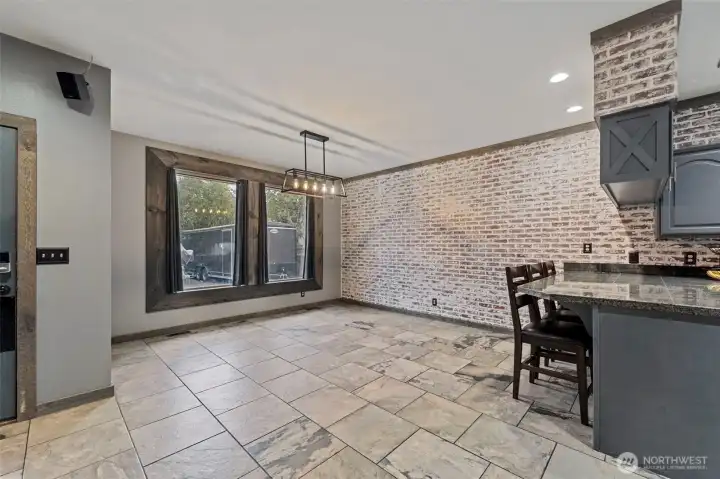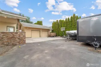 A one of a kind property with a huge RV garage (with car lift). Home features; 2 bedrooms and 1 office (that could be converted to a bedroom). Updated kitchen and living room. Outdoor covered deck; finished with stacked stone, tile and quartz. Detached garage in backyard is finished. Equipped with Heating/AC and drywall. Great Gym, Sports hangout or hobby space. Great location near schools and shopping.