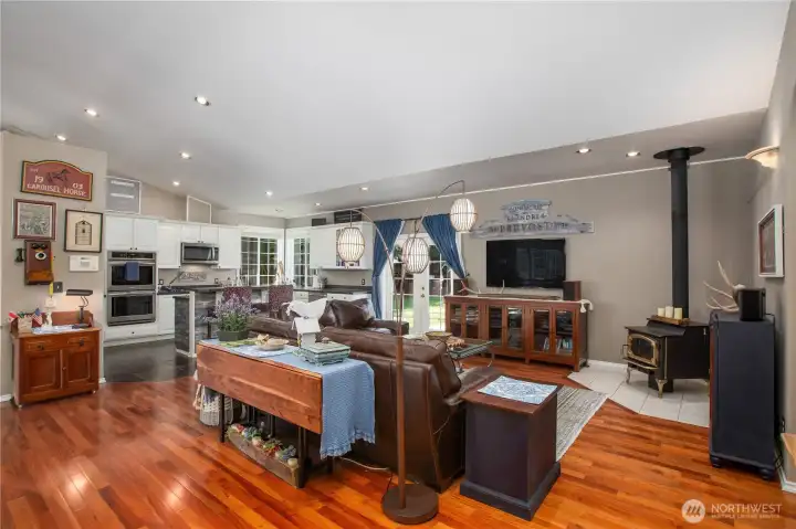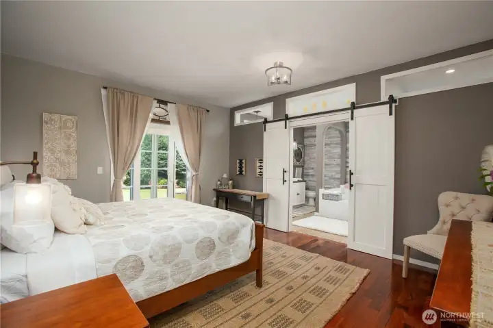 Experience peaceful, quiet, country-like living in the beautiful gated community of Lacamas Valley Ranches West! Custom-designed rambler sits on 1.16-acre lot surrounded by mature landscaping. 2285 SF, 3 bed & 2.5 bath, featuring soaring vaulted ceilings, hardwood floors, cozy gas fireplace PLUS freestanding wood stove. Open-concept kitchen includes center island, pantry & double ovens. Primary suite with soaking tub, custom walk-in closet & slider that opens to backyard oasis. Fully Fenced yard with beautiful water feature, gazebo & garden shed. Ample space for RV parking, future shop or even a pool! FRESH exterior paint, newer oversized H2O tank & Central AC. Located just 15 min to JBLM & close to restaurants, shopping, movies & schools.